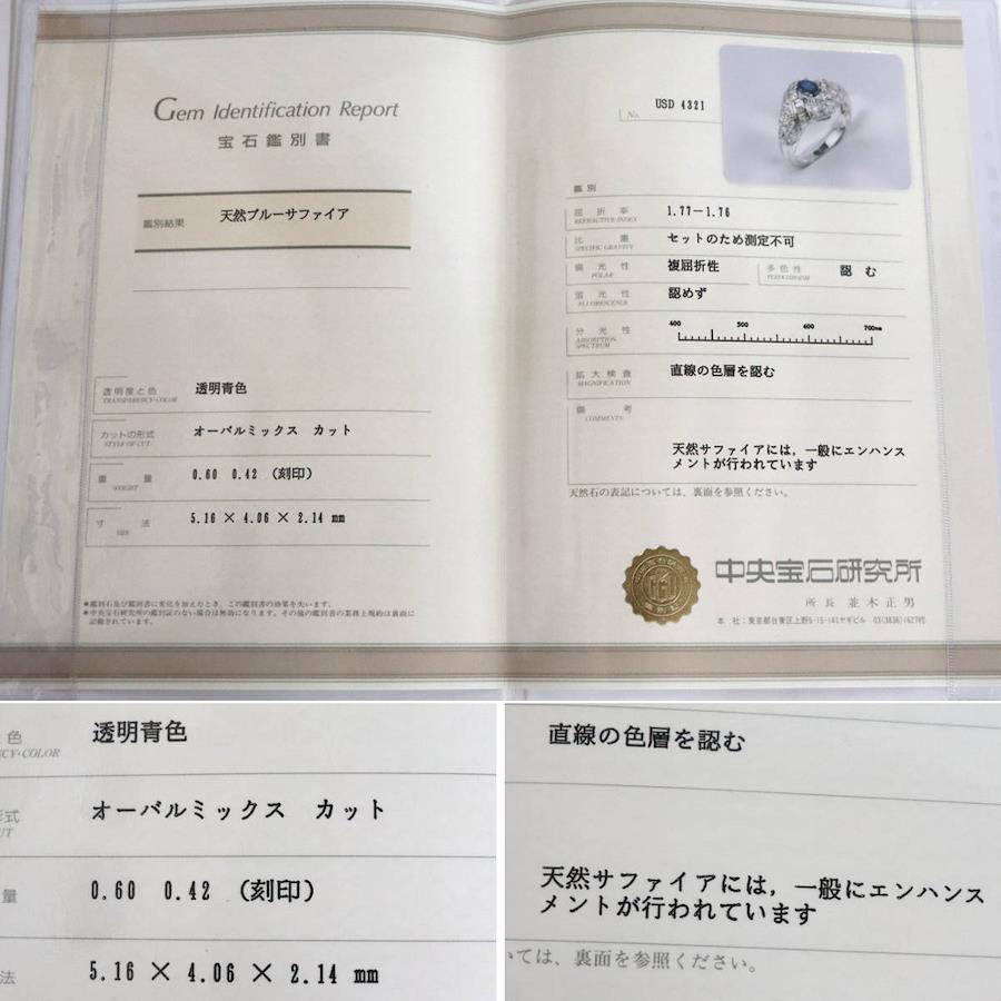 天然のブルーサファイアと鑑別された鑑別書が付属します。