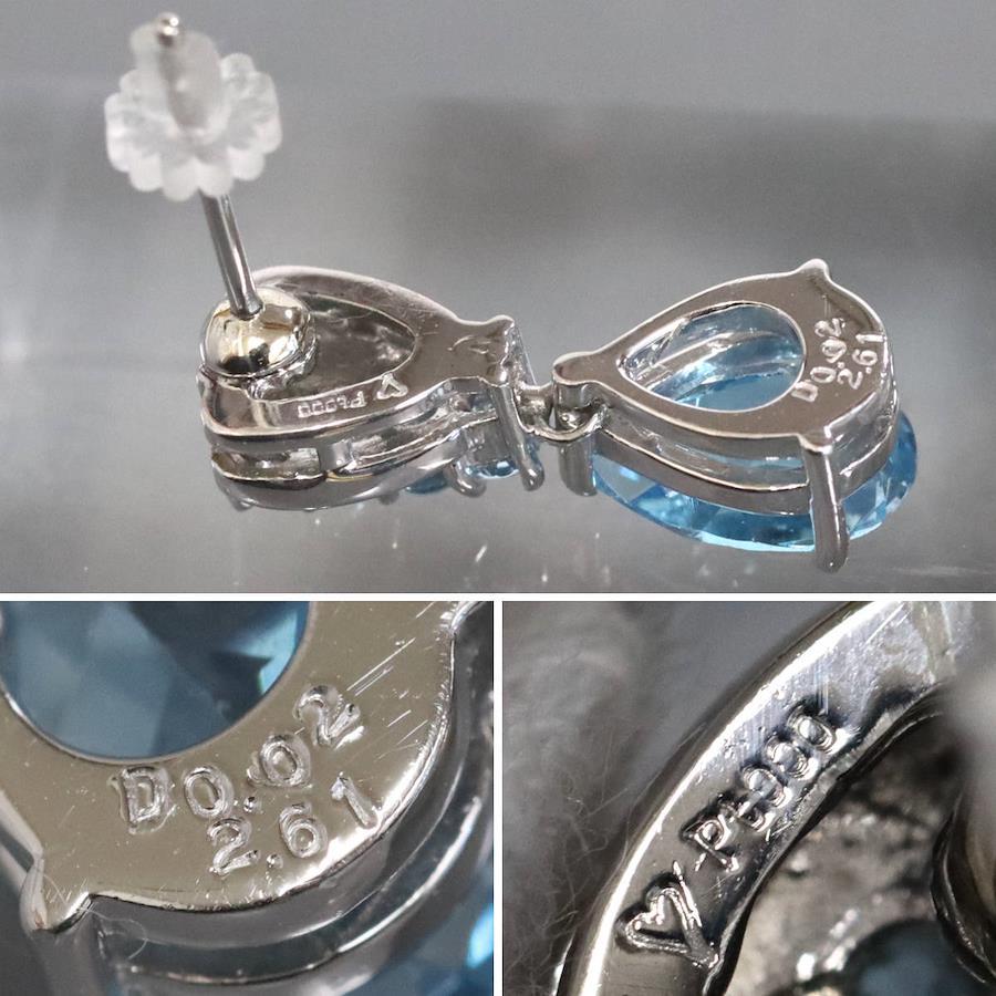 Pt900ブルートパーズダイヤモンドピアスの中古品です。爽やかな色味のブルートパーズが目を引きます。ブルートパーズは非常に照りがいいです。地金には小傷があります。+---+---+---+---+---+。{状態}A{素材}Pt900,ブルートパーズ,ダイヤモンド{サイズ}約W8mm × H23mm。{その他}BT2.61ct×2,D0.02ct×2,9.0g。{付属品}なし(サービス箱をお付けします){お問合せ商品番号}26013136+---+---+---+---+---+。