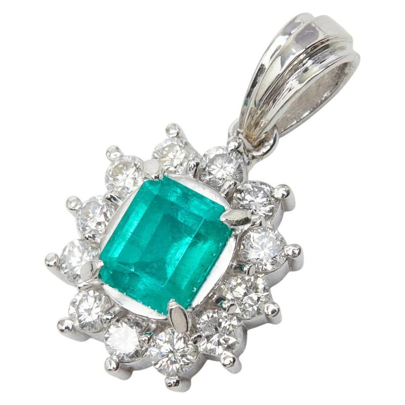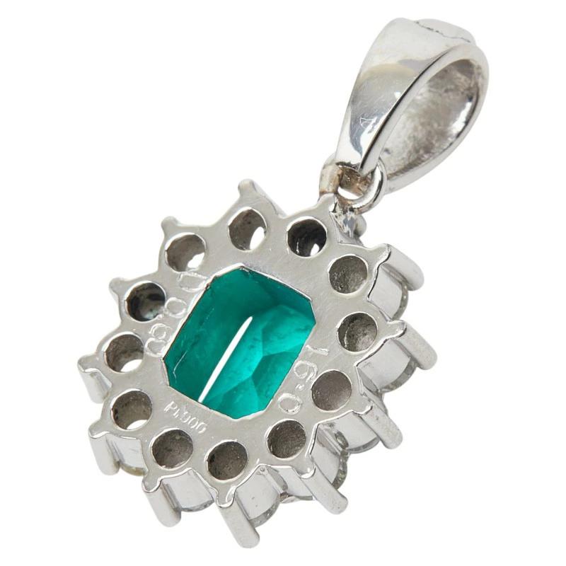 - Pt900 プラチナ エメラルド0.91ct ダイヤ0.60ct フラワーモチーフ ペンダントトップ ネックレス レディース 【中古】