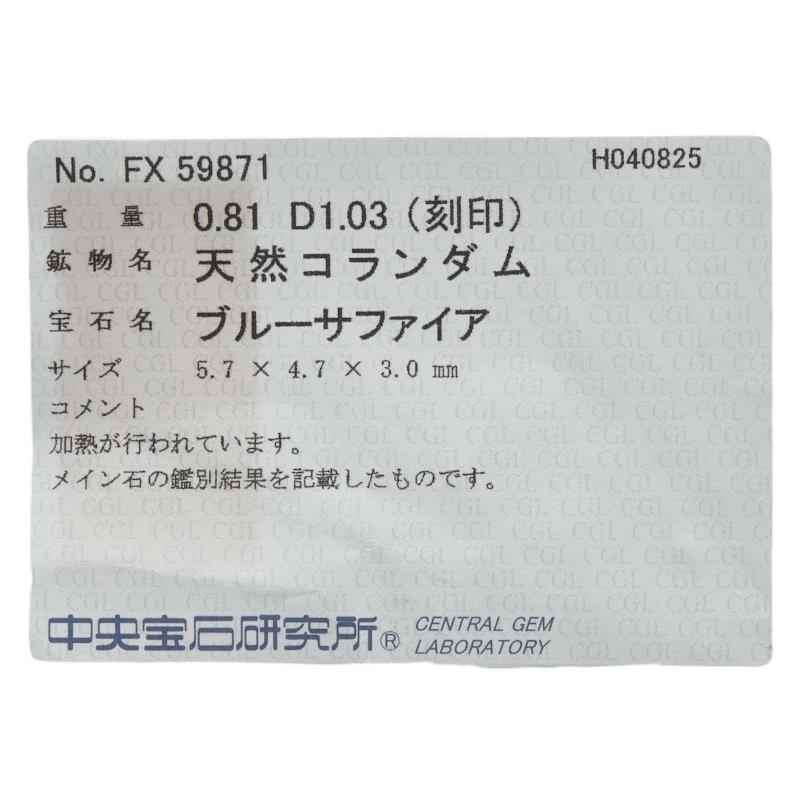 | 中石石目 | サファイア0.81ct |