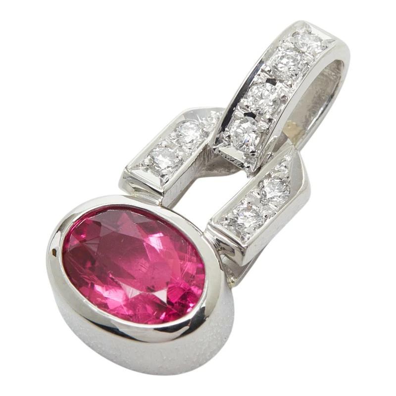 - Pt900 プラチナ ピンクトルマリン0.70ct ダイヤ0.102ct ペンダントトップ ネックレス レディース 【中古】