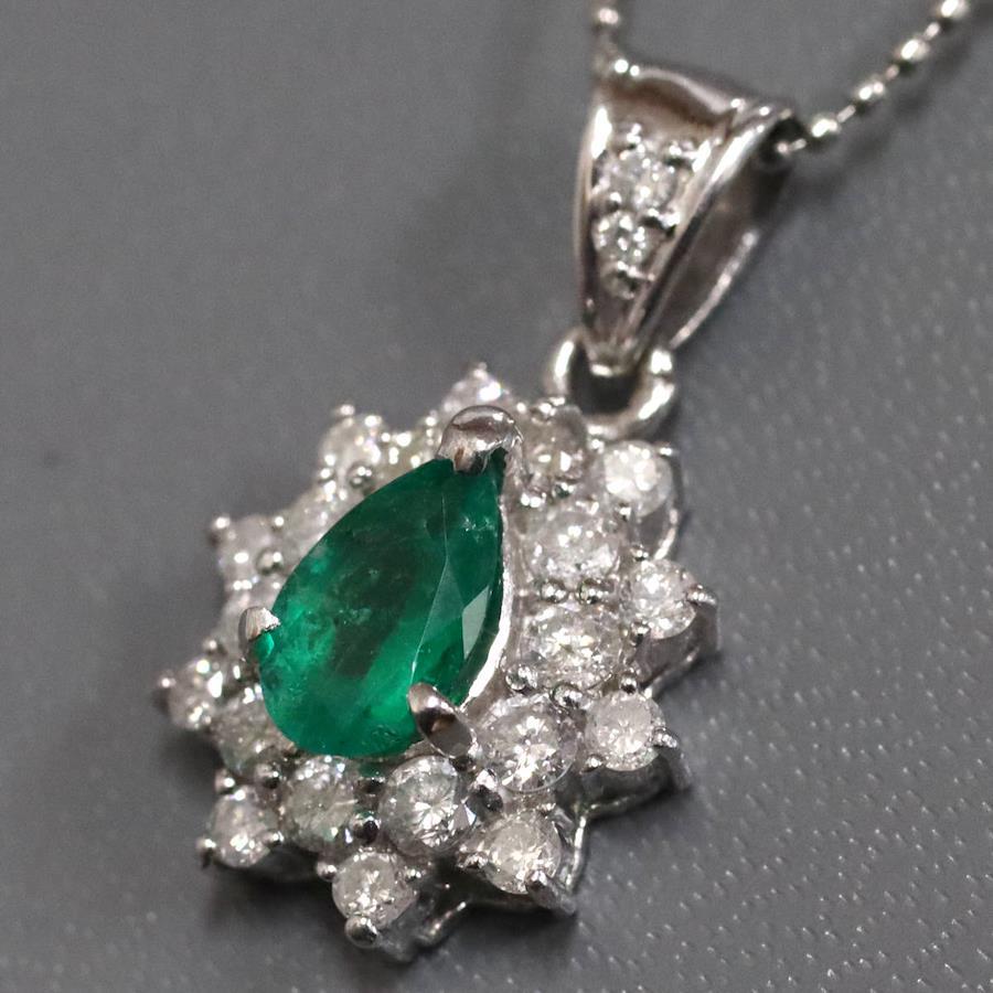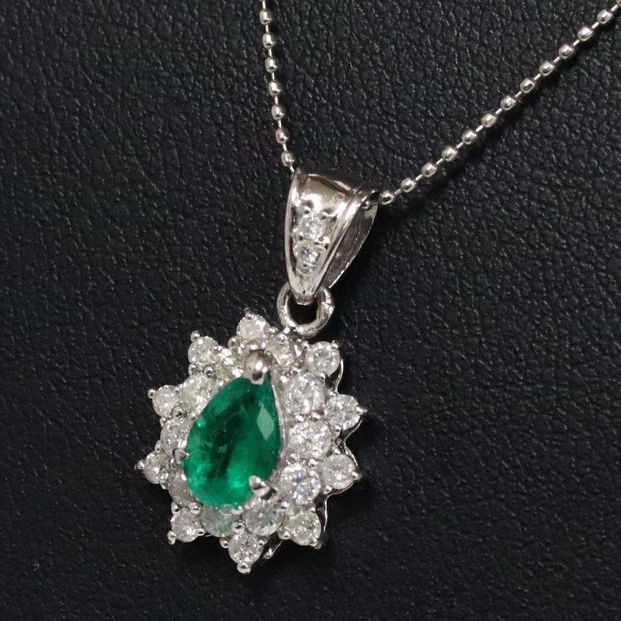 Pt900/850エメラルドダイヤモンドペンダントの中古品です。エメラルド ダイヤモンド共にインクルージョンは多めで、カーボン状のものもあります。エメラルドのインクルージョンは肉眼でも確認できます。一部のダイヤモンドとエメラルドの表面に天然の欠けがあります。地金にはわずかに小傷があります。+---+---+---+---+---+。{状態}B{素材}トップPt900,エメラルド,ダイヤモンドチェーンPt850{サイズ}トップ約W13mm × H13mm(バチカン含まず)チェーン長約45cm。{その他}E0.59ct,D0.68ct,5.1g。{付属品}なし(サービス箱をお付けします){お問合せ商品番号}25103041+---+---+---+---+---+。