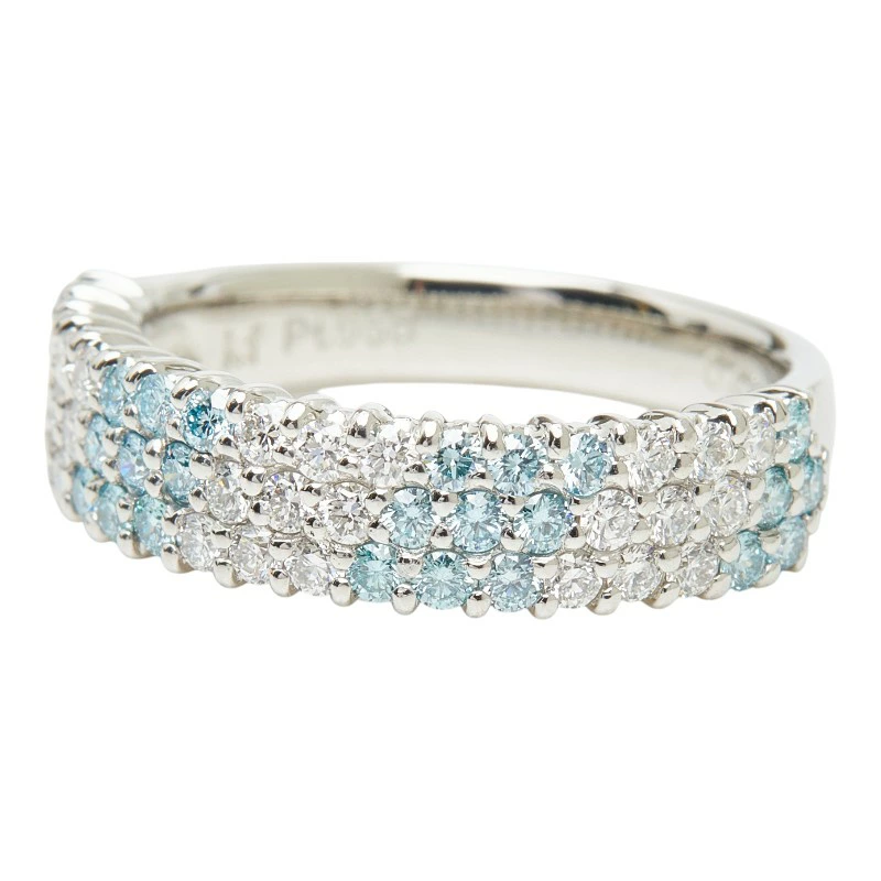 - Pt950 プラチナ ブルーダイヤモンド0.43ct ダイヤ0.41ct Koo-fu リング 指輪 レディース 11号 【中古】