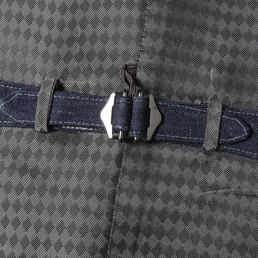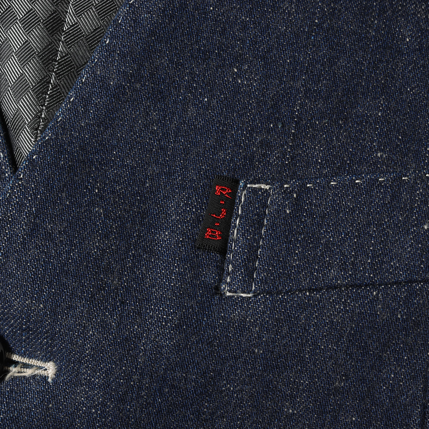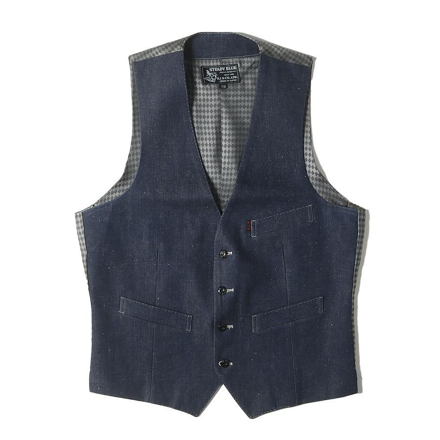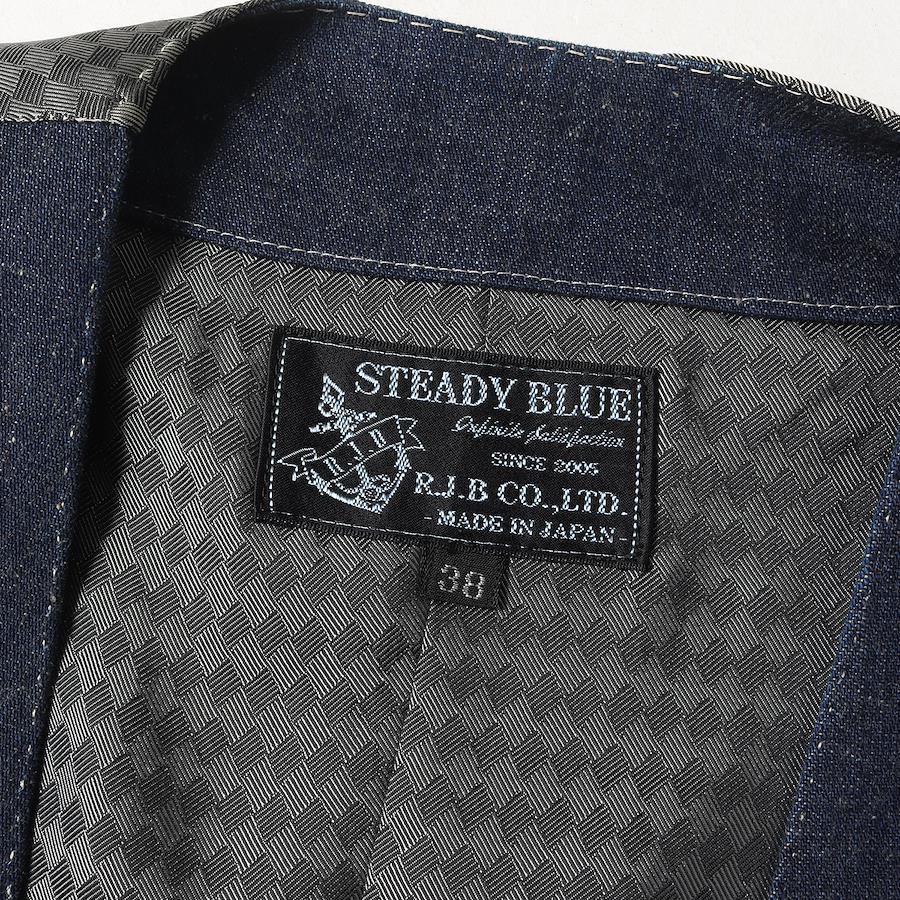 | 商品説明 | ・前身頃 リジッドデニム生地 ・後身頃 ダイヤ柄ジャガード生地 ・黒塗りボタン ・シンチバック付き |