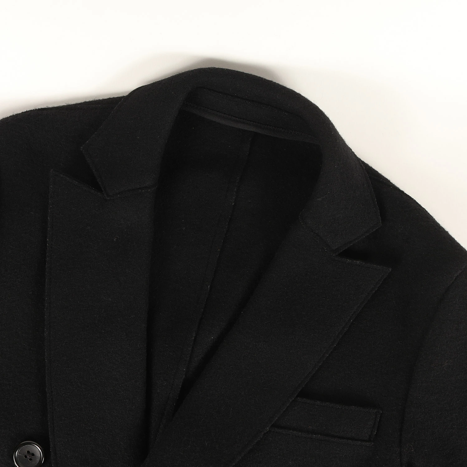 | 商品説明 | ・ウールフラノ生地 ・ピークドラペル ・ダブルブレスト ・フロント6つボタン ・裏地なしの一枚仕立て ・フロントダーツ ・ノーベント仕様 |