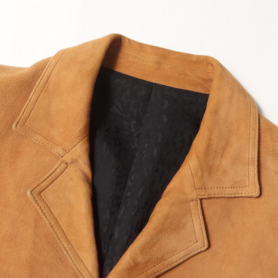 | 商品説明 | ・柔らかく軽量なシープレザースウェード生地 ・フロント4つボタン ・レオパードジャガード総裏地 ・サイドアジャスターボタン |