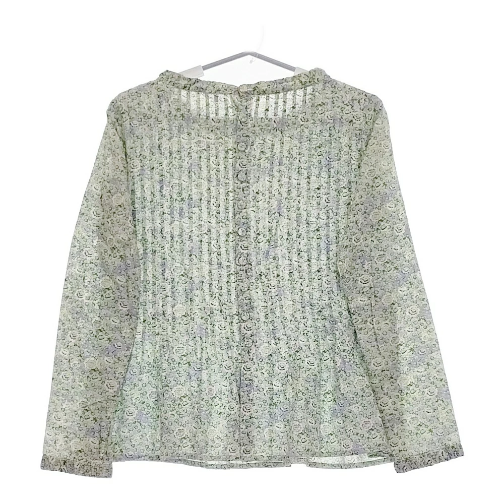 R&D.M.Co. Floral Pintuck Back Button Blouse Shirt, Light Green Lavender, Women's, Old Man's Tailor, Pre-owned, Item No. 5-0215M