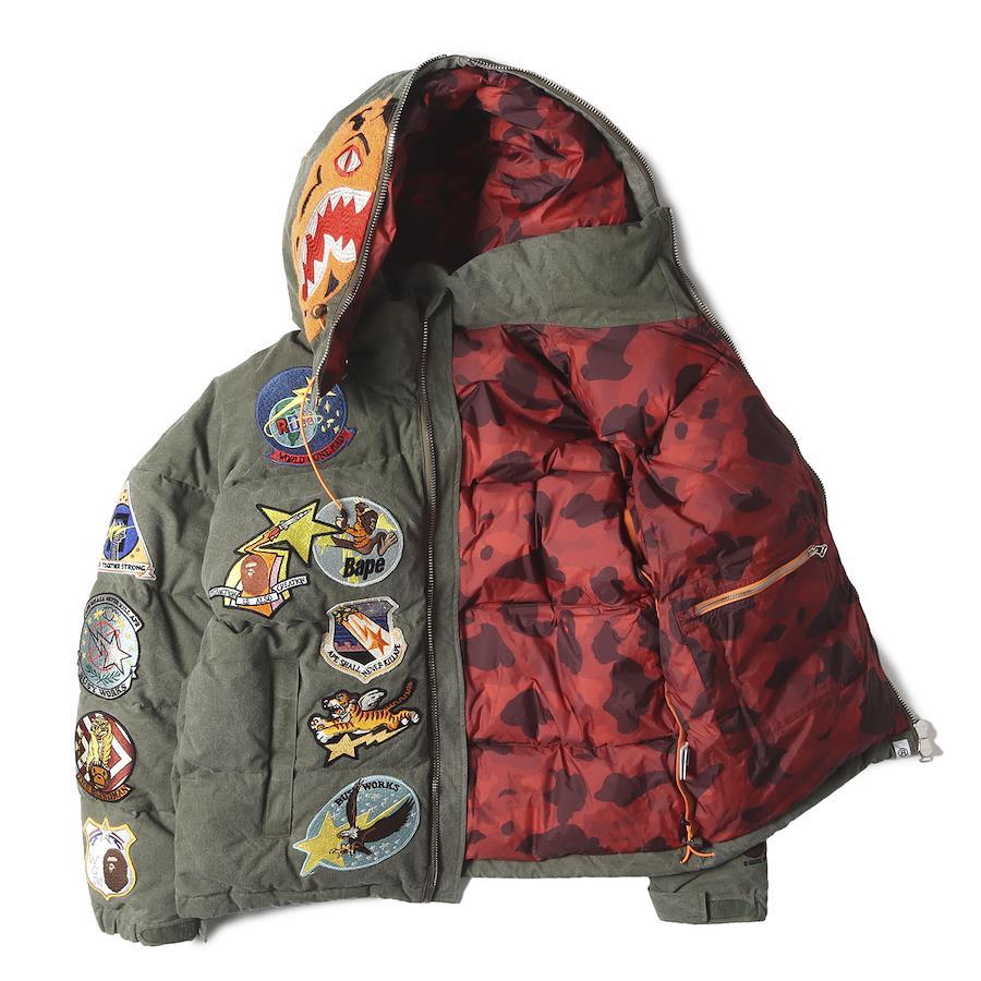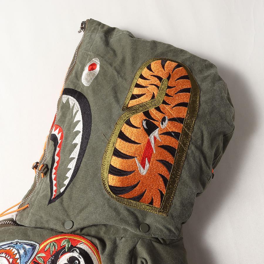 | 商品説明 | ・第三弾となる“A BATHING APE”とのコラボシリーズ ・102枚限定のシリアルナンバー入り ・表地 定番のUSヴィンテージテントクロス ・裏地 カラーカモ柄リップストップナイロン素材を使用 ・シャーク&タイガーのセパレートデザイン ・ミリタリーモチーフの多数のパッチ付き ・フード取外し可能 |