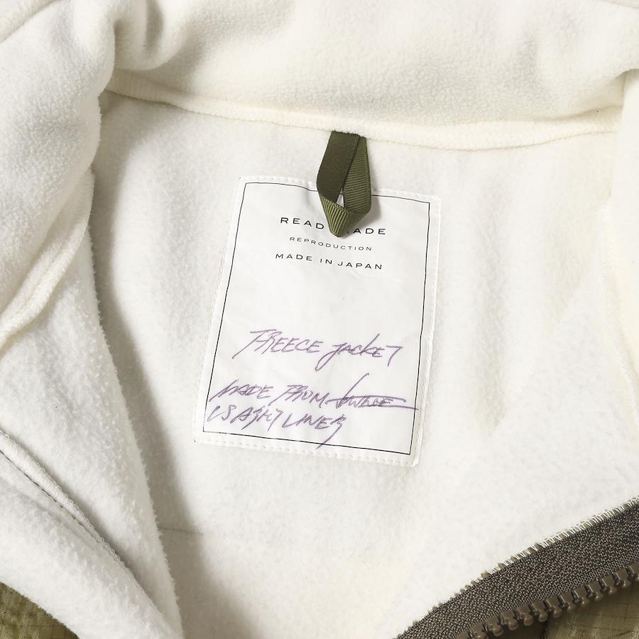 - ヴィンテージの“米軍 キルティングライナー”を使用したフルジップフリースジャケットです。左袖にワッペンをあしらい、ややルーズなシルエットで仕上げた一枚になります。