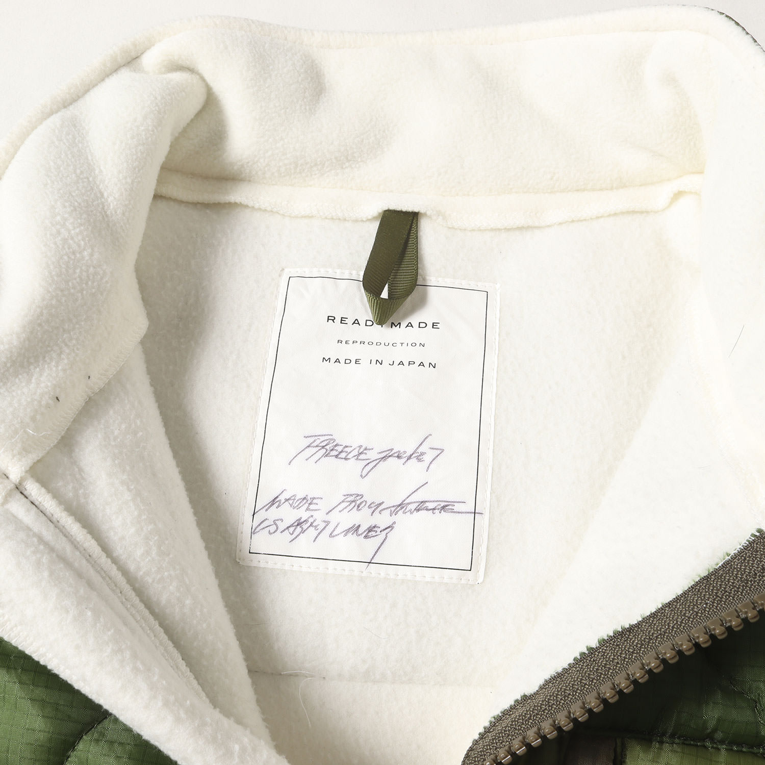 | 商品説明 | ヴィンテージの“米軍 キルティングライナー”を使用したフルジップフリースジャケットです。左袖にワッペンをあしらい、ややルーズなシルエットで仕上げた一枚になります。 |