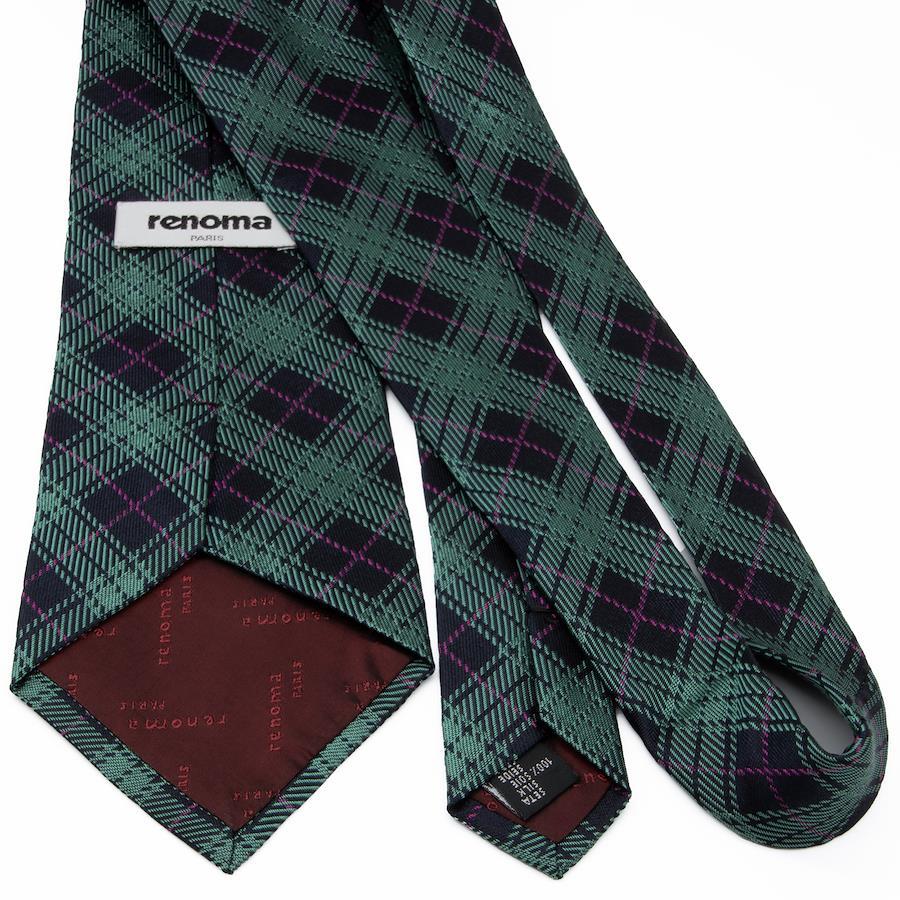 グリーン系をベースに、ブラックやパープルのラインが交差する知的なチェック柄です。