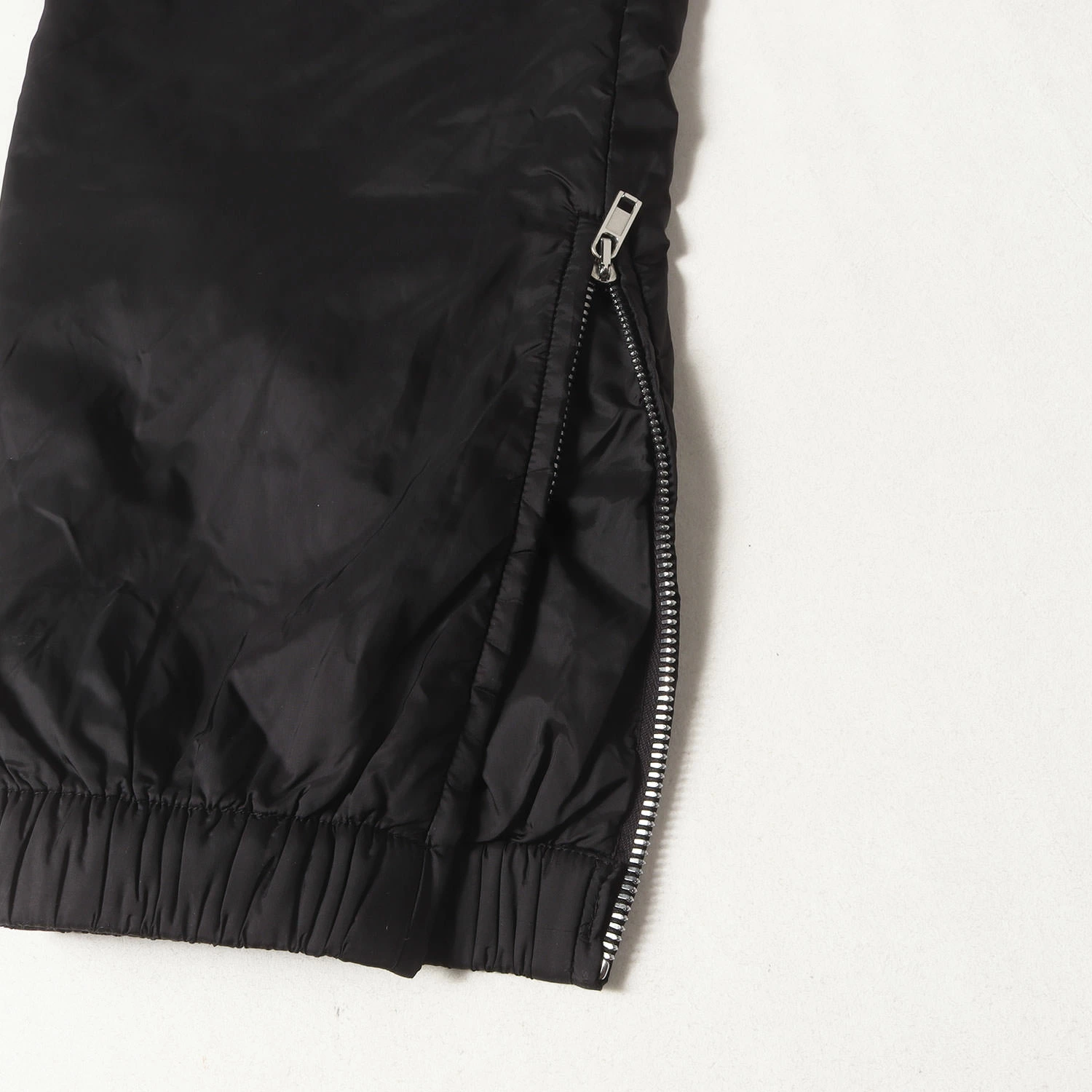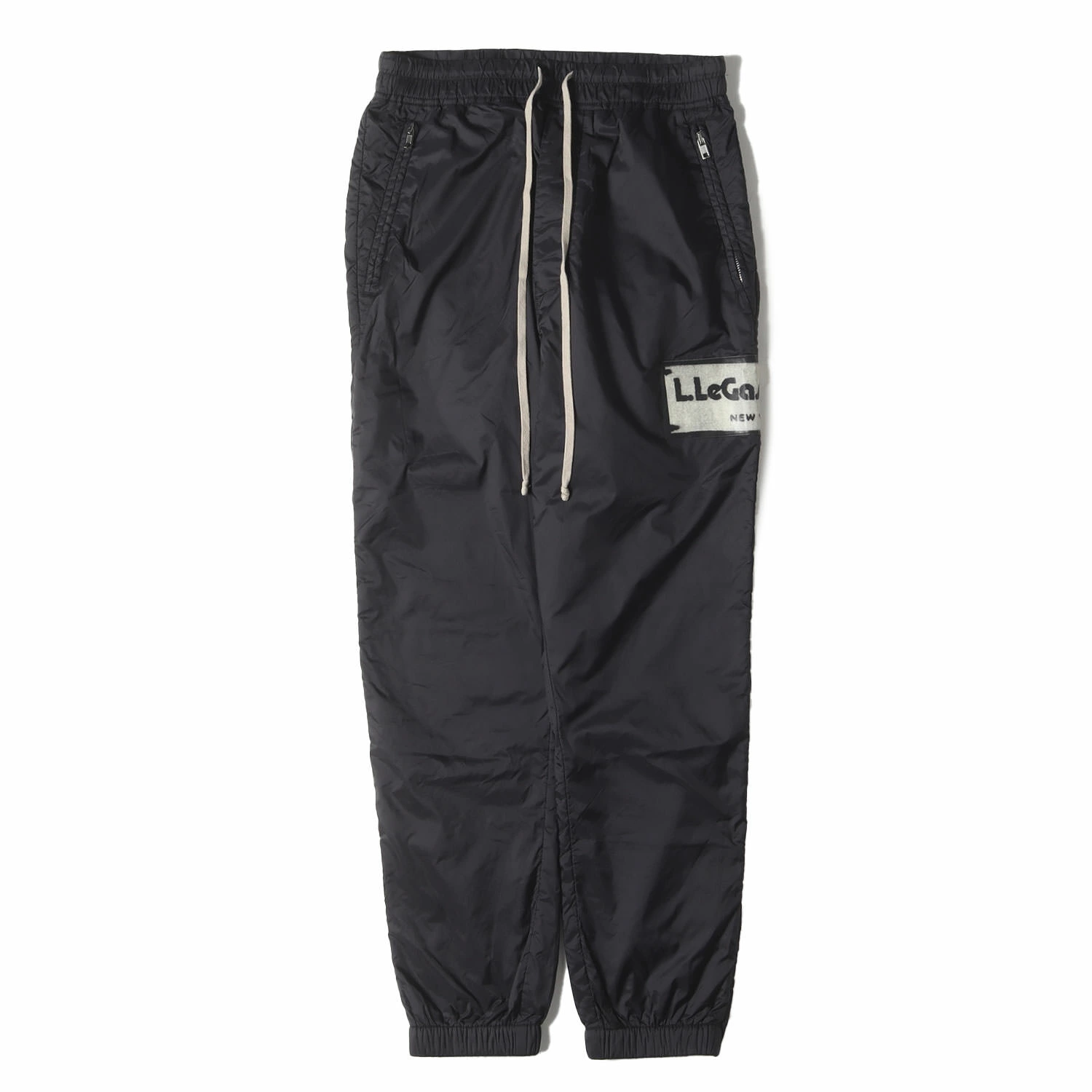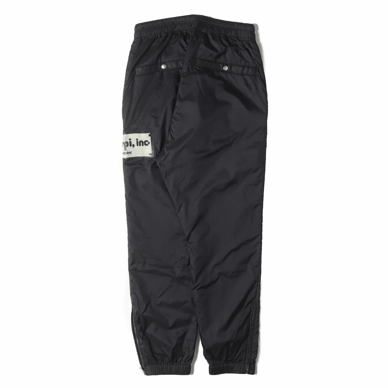 - 2枚仕立てのナイロン生地を使用し、裾ジップタイプで仕上げたトラックパンツです。左サイドにあしらったロゴパッチがポイントです。
