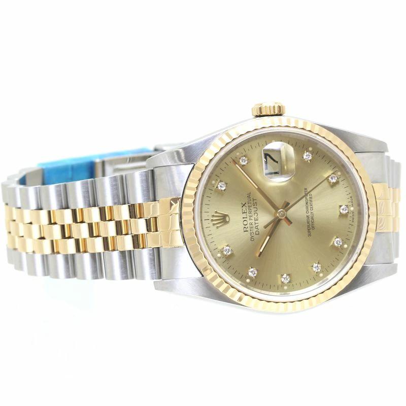 | 商品説明 | | 取扱店舗 | 銀座店 (TEL03-6264-4880) | | 状態 | 中古Aランク | | 型番 | 16233G | | 素材 | K18YG イエローゴールド / ステンレススチール | | 文字盤 | シャンパンゴールド/10Pダイヤモンド | | サイズ | [ケース幅]約36mm(リューズ除く) [腕周り]最大約19.5cm