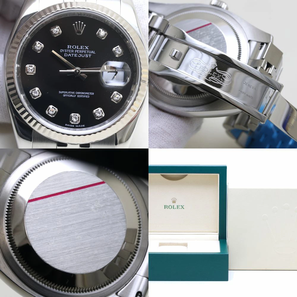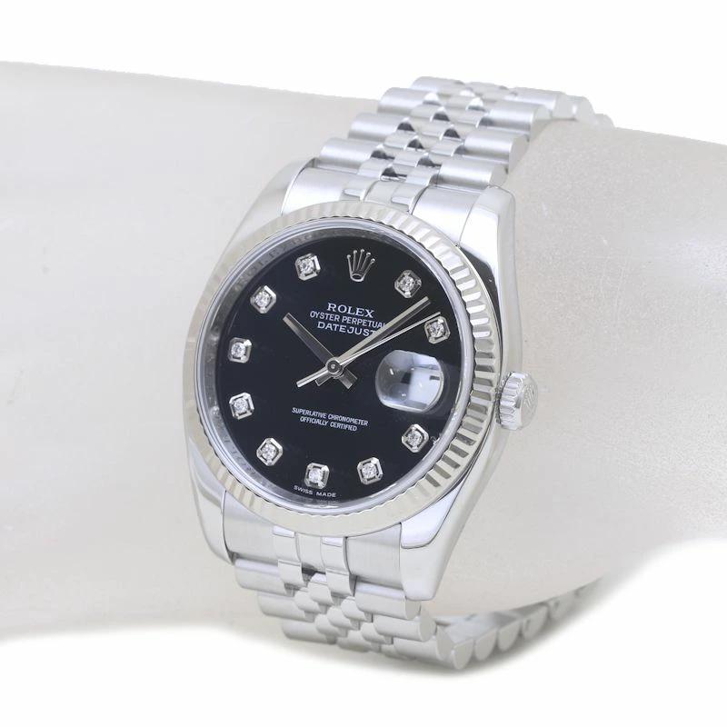 | 商品説明 | | 取扱店舗 | 銀座店 (TEL03-6264-4880) | | 状態 | 中古Aランク | | 型番 | 116234G | | 素材 | K18WG ホワイトゴールド / ステンレススチール | | 文字盤 | ブラック/10Pダイヤモンド | | サイズ | [ケース幅]約36mm(リューズ除く) [腕周り]最大約18.5cm