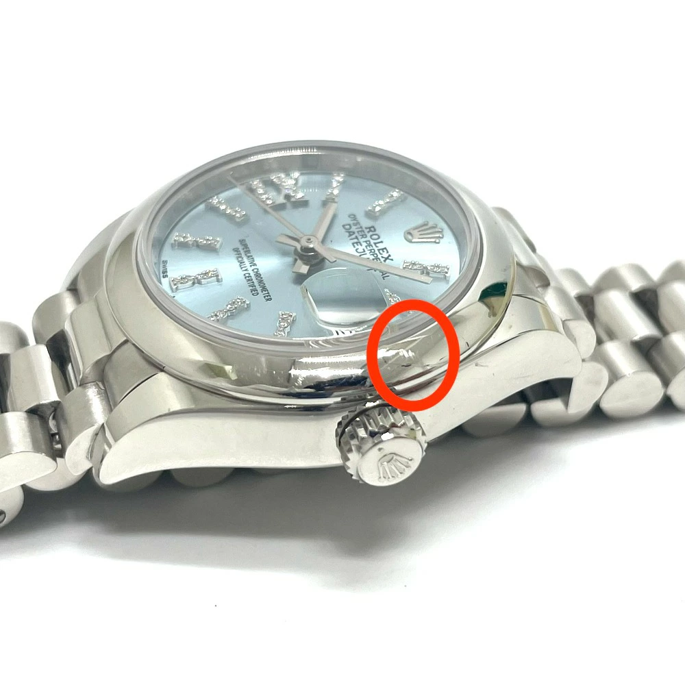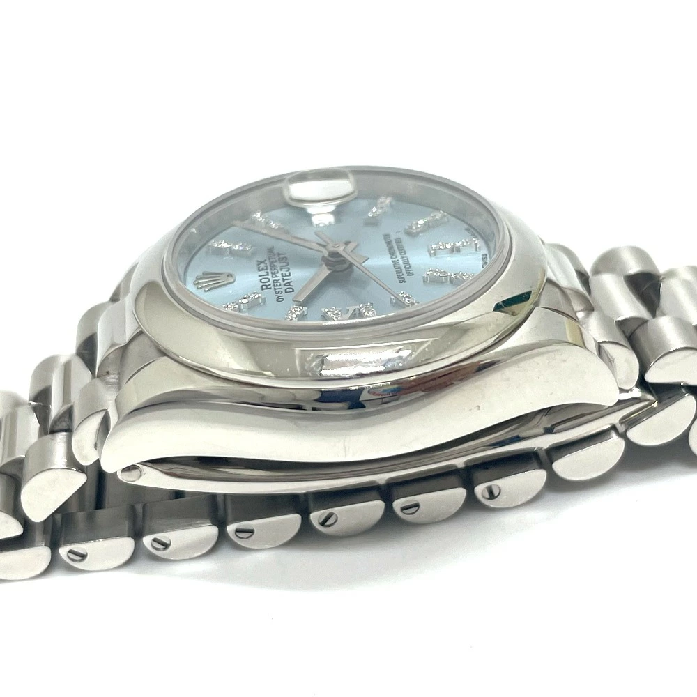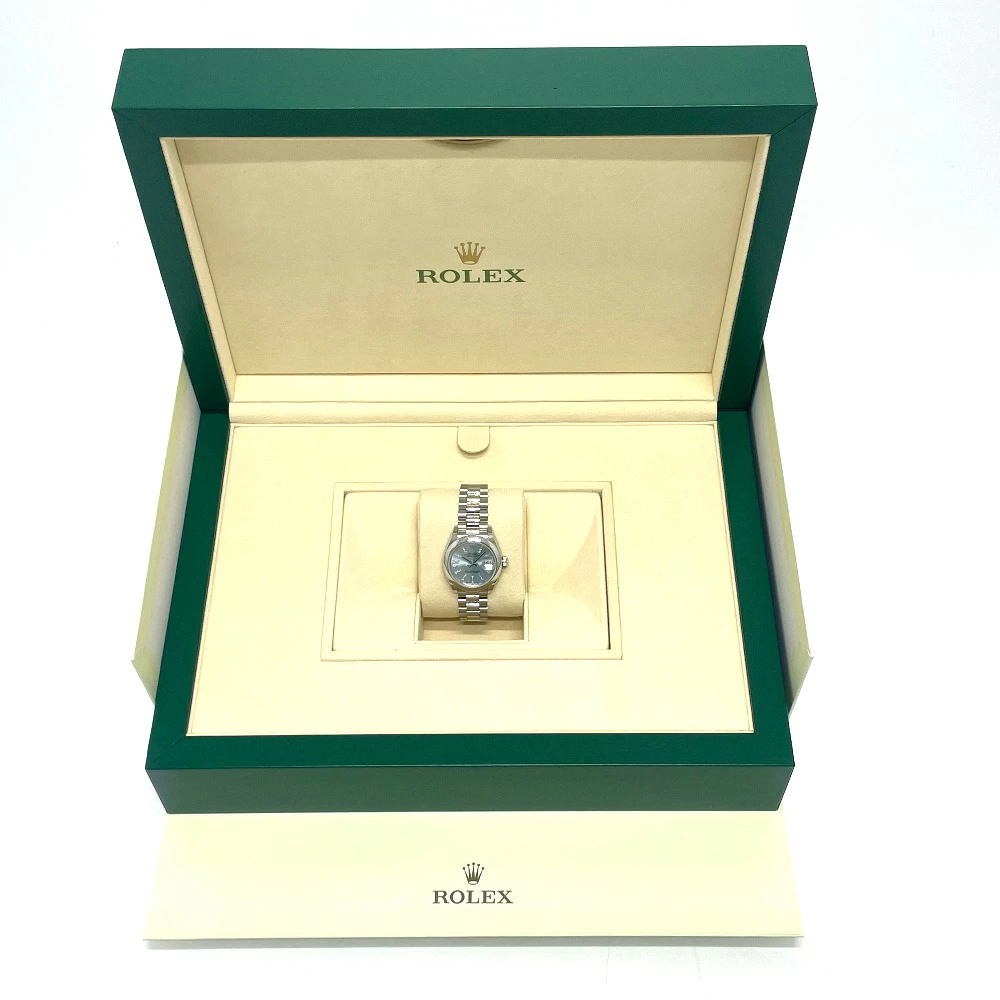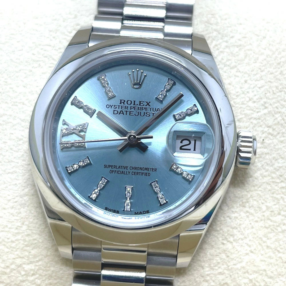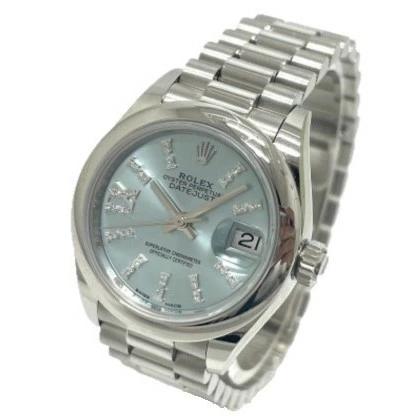 | 商品説明 | こちらはプラチナ専用ダイアルのアイスブルー文字盤で、アワーインデックスにダイヤモンドをセッティングした華やかなデイトジャストです。 |