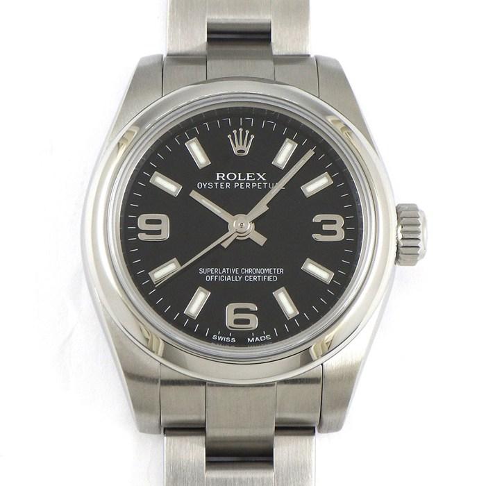 ■商品名Rolex 腕時計 オイスターパーペチュアル 176200 G番 2010年 ルーレット刻印 夜光インデックス 夜光針 ブラック文字盤 SS 自動巻き 【中古】