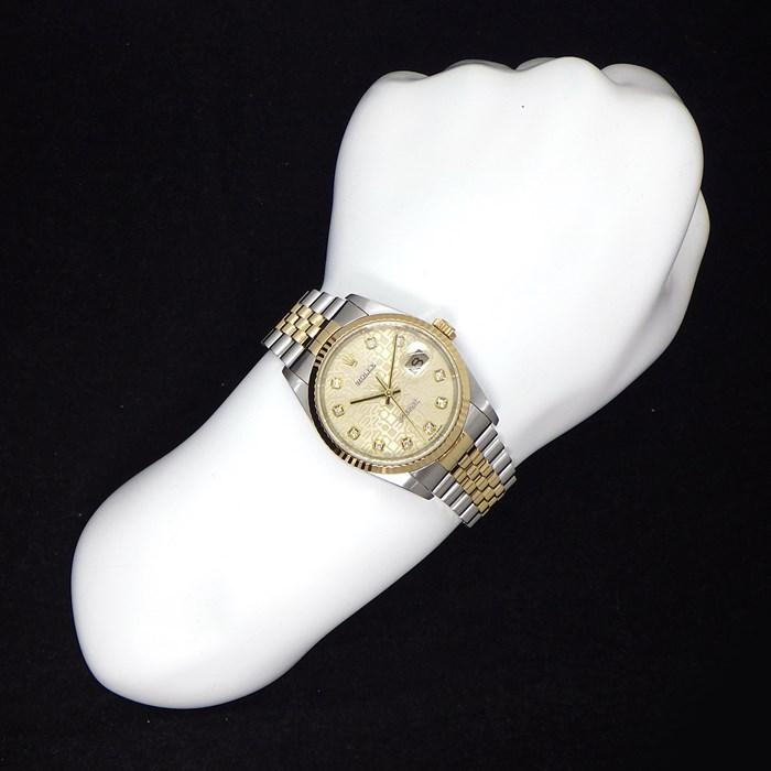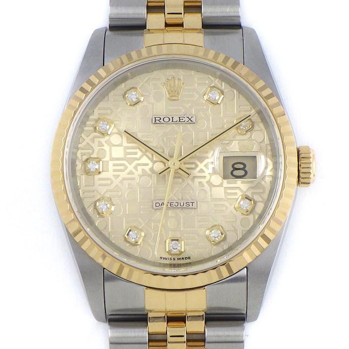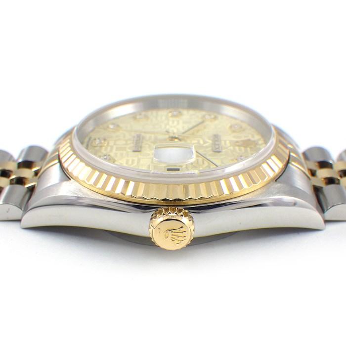 Rolex 腕時計 デイトジャスト 36mm 16233G Y番 2002年製 10ポイント ダイヤインデックス シャンパンカラー コンピューター文字盤 彫コン フルーテッドベゼル ジュビリーブレス K18YG SS 自動巻き 【箱・保付き】 【中古】
