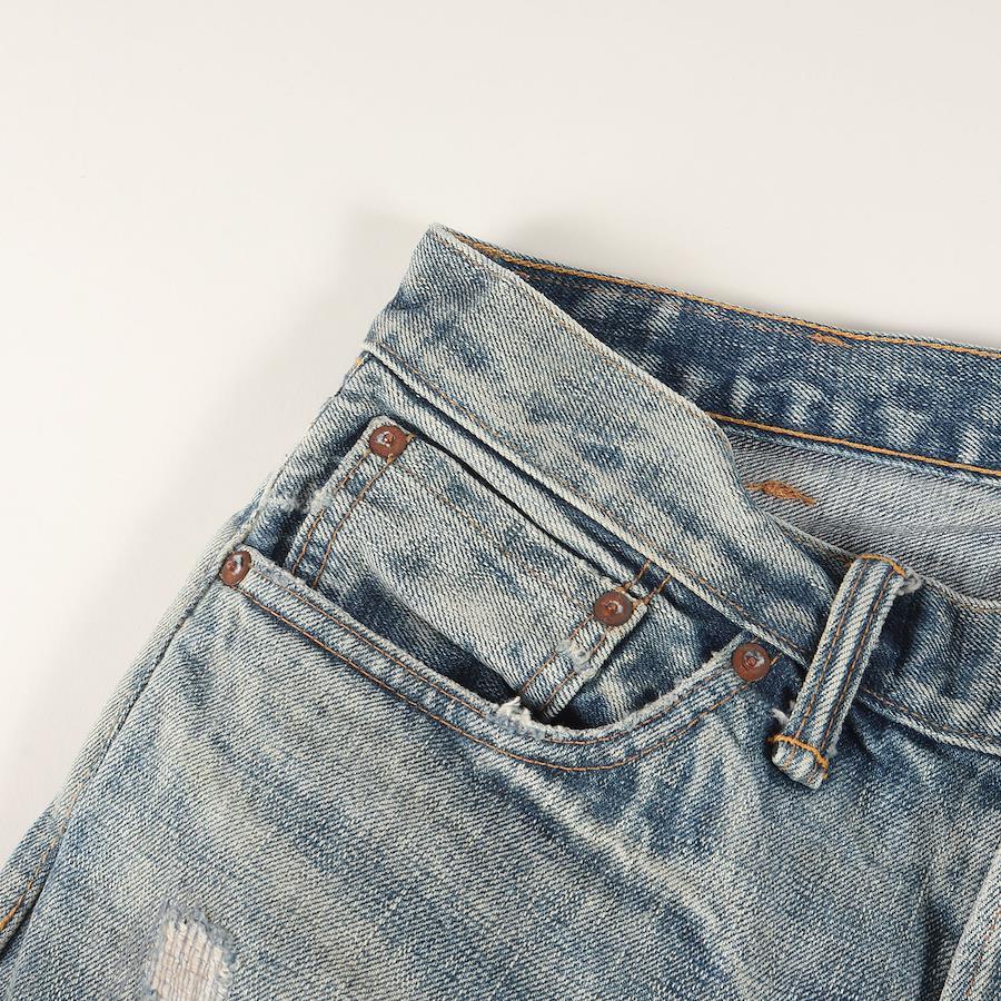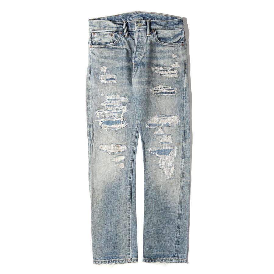 | 商品説明 | ・セルビッチ生地 ・ボタンフライ ・ヴィンテージ、クラッシュリペア、汚し加工 ・ややローライズのスリムストレートシルエット ・バックポケット 飾りステッチあり ・裾チェーンステッチ |