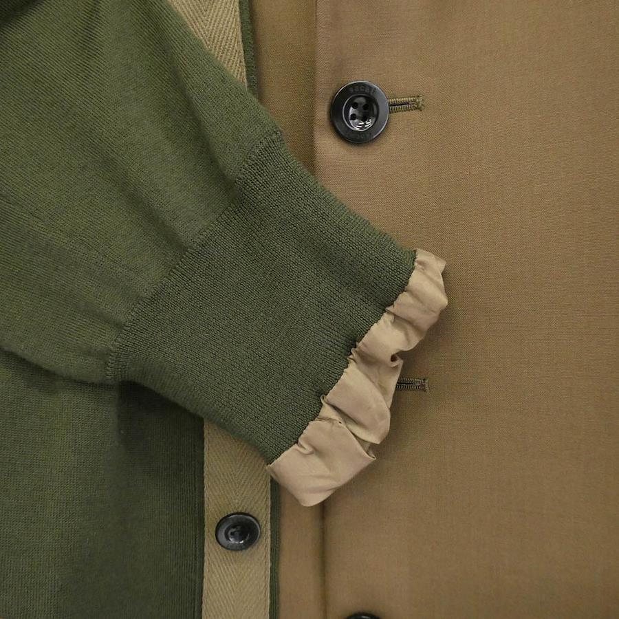 Sacai 22-02806M Knit Jacket, Mixed-Material Docking Knit Jacket, Moss Green, Size 2, Men's [Used]