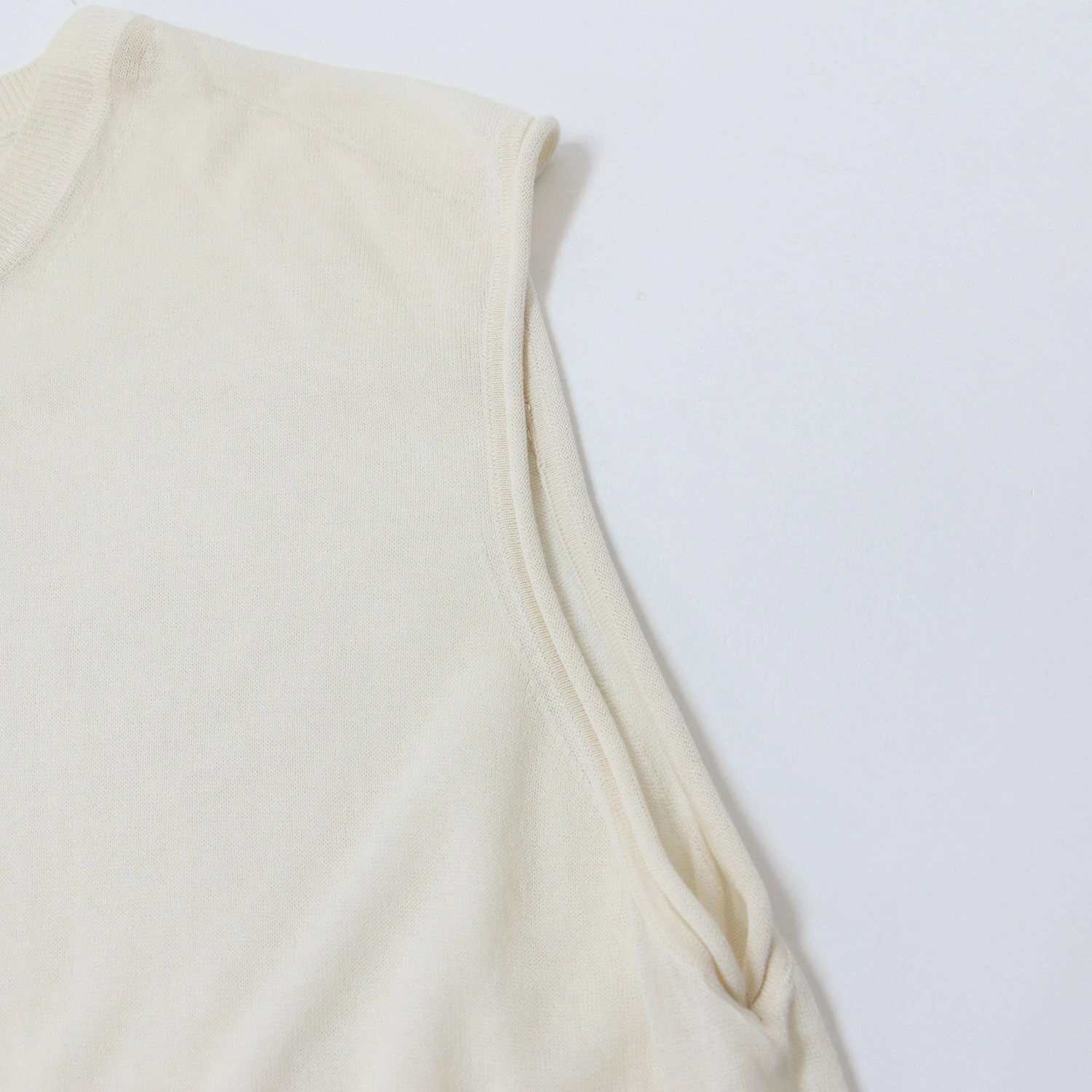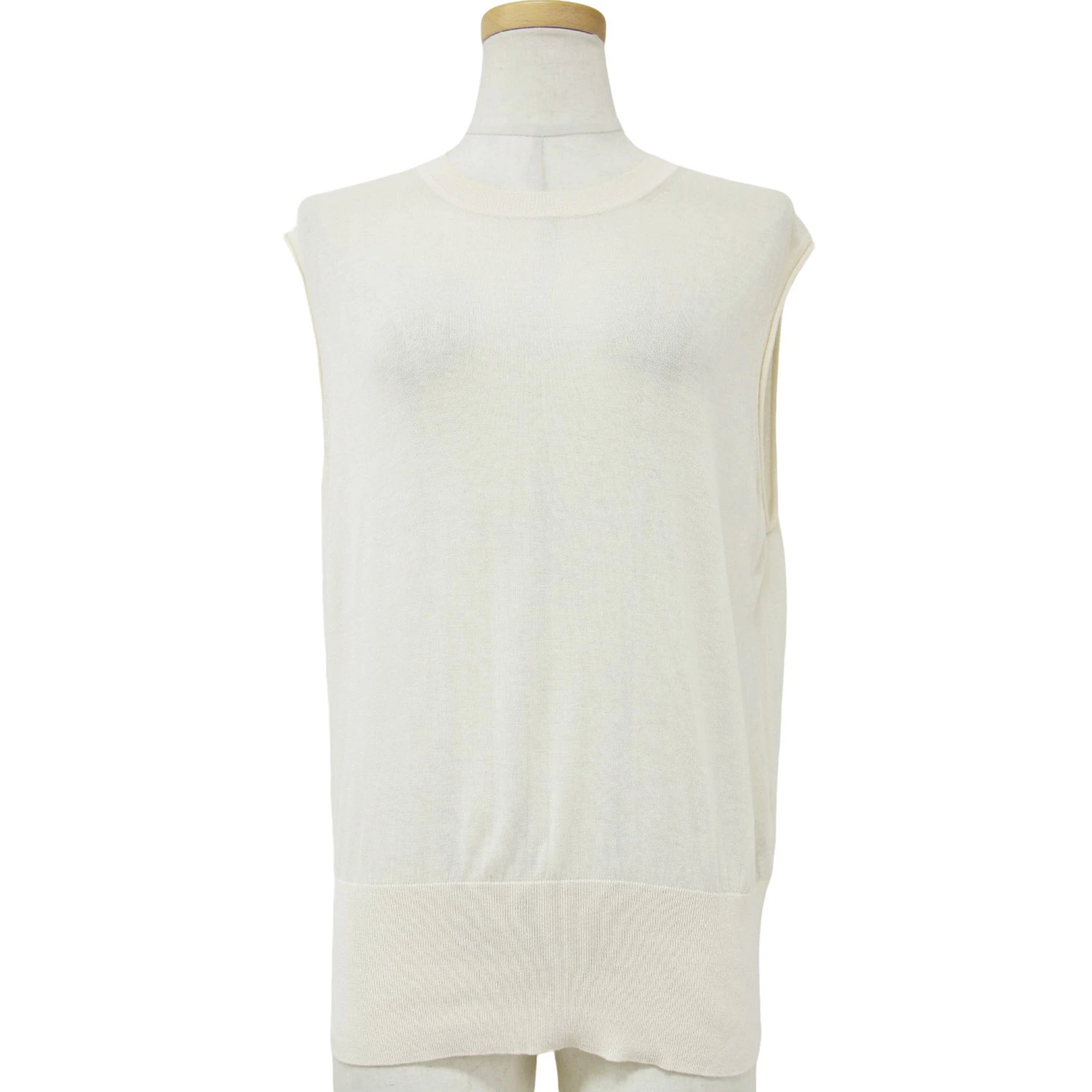| 商品説明 | ・ノースリーブニット ・全体的に透け感あり ・袖周りロールアップデザイン ・クルーネック 丸首 |