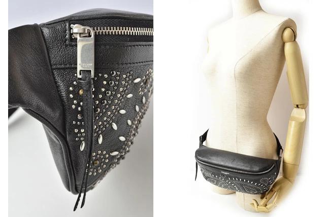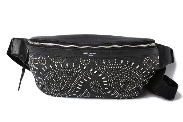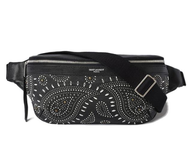 サンローランの人気アイテム、セレブから絶大な支持を集めるボディバッグです。ペイズリー柄のスタッズが印象的です。シンプルながら高級感のあるラグジュアリーな逸品。幅広く使い回しがききそうです。内ポケットあり、荷物の仕分けがしやすいデザインに。ウエストバッグと、ボディバッグで使用可能で、スタイルに合わせてお使いいただける、2WAYバッグです。