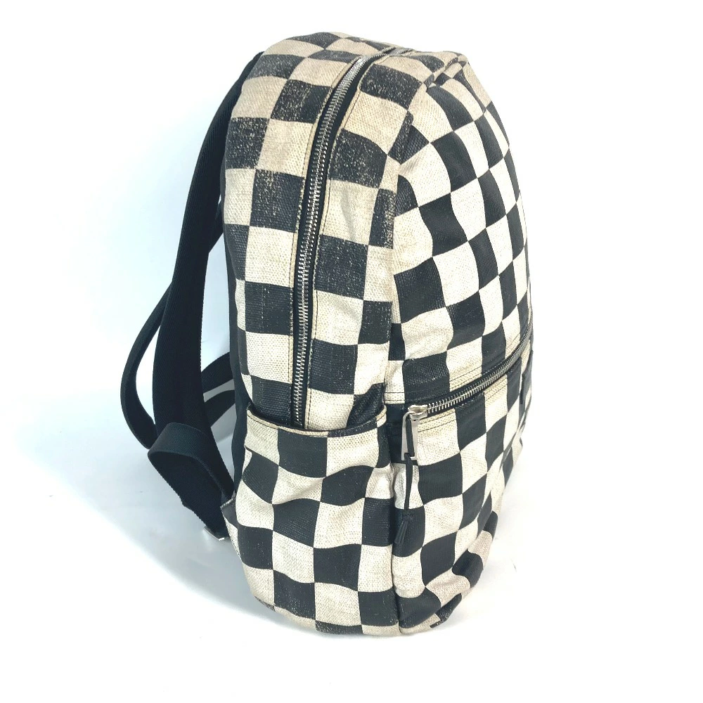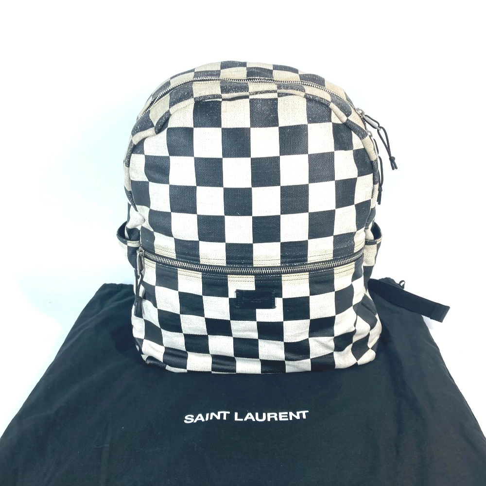 SAINT LAURENT PARIS 609109 Plaid Backpack, Leather/Coated Canvas, Men's, Beige [Pre-owned]