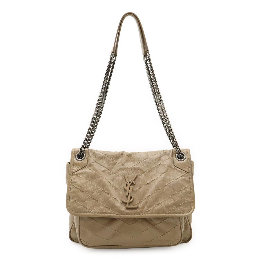 【コメント】一般的な使用感のあるお品物となっております。ヴィンテージ感漂うレザーの風合いにキルティングステッチとYSL金具が目を引く、高級感溢れるショルダーバッグでございます。収納力もある為、様々なシーンで活躍する逸品でございます。