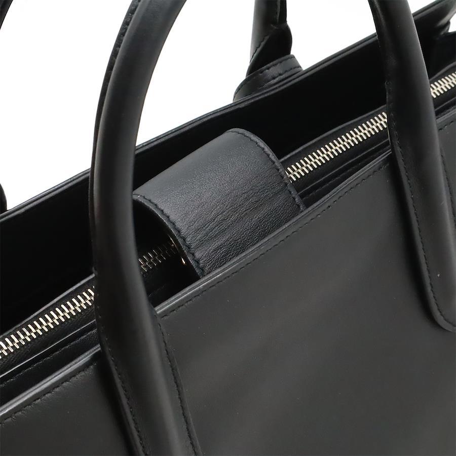 【商品説明】[サイズ]W36cm H23.5cm D15cm ショルダーストラップ最長約130cm(7段階調節可、金具含む)[材質]レザー[カラー]ブラック[仕様]内側間仕切りファスナーポケット、ポケット1[付属品]保存袋 ショルダーストラップ ブランドタグ[重さ]約1kg