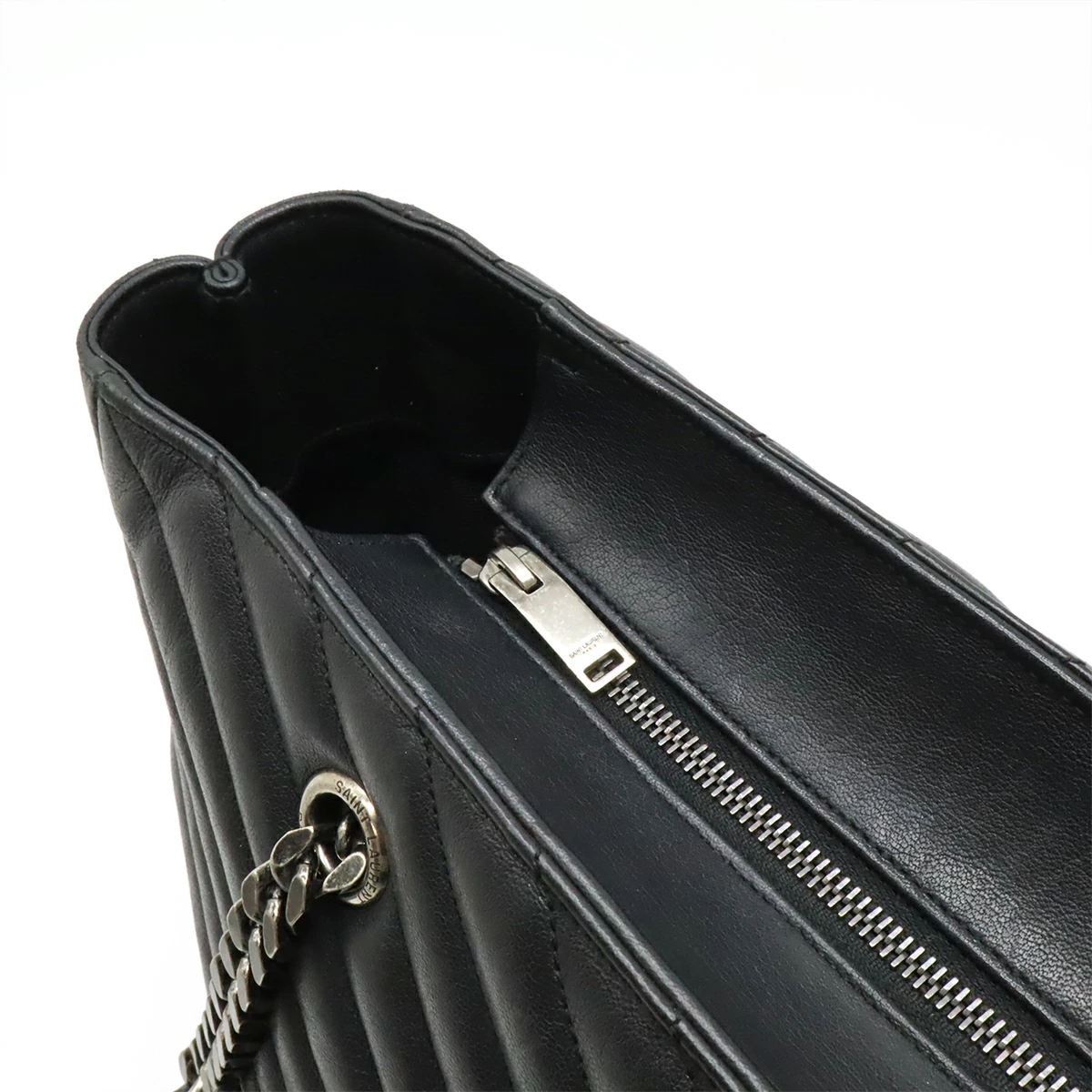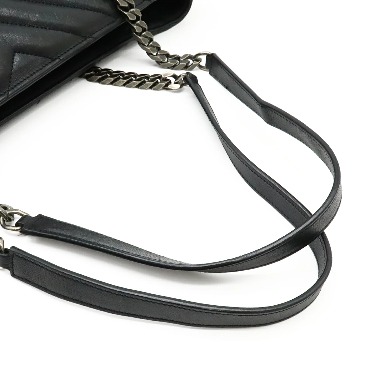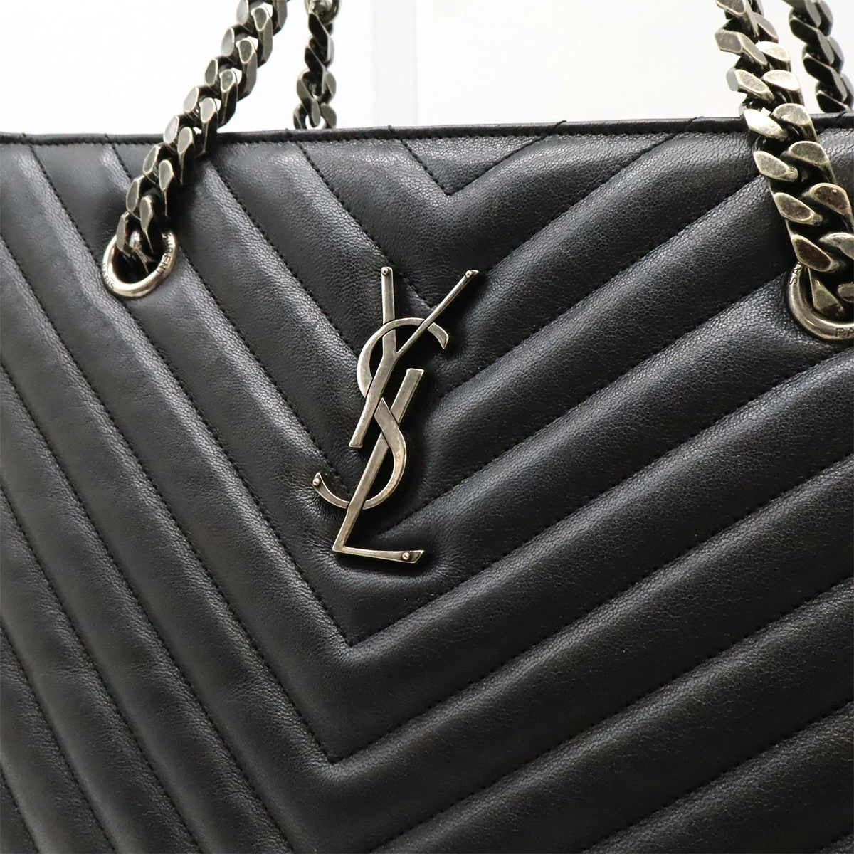 Vステッチとマットなシルバー金具がサンローランらしいデザイン性の高いチェーンショルダーバッグ。
