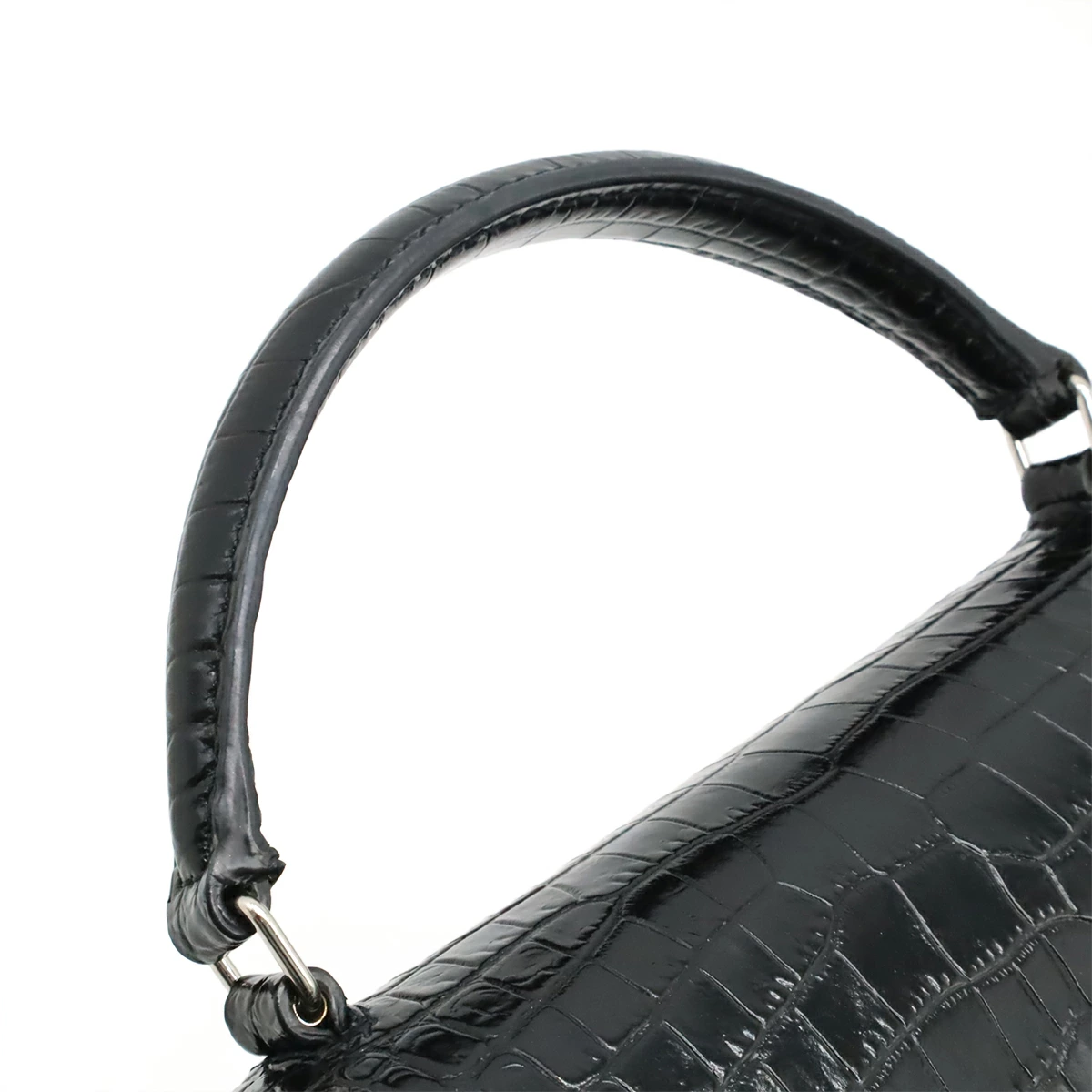 クロコ調のレザーを使用した高級感溢れるバッグ。