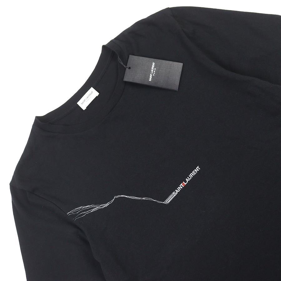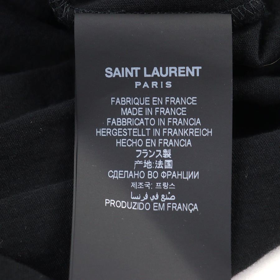 SAINT LAURENT PARIS Short Sleeve T-Shirt with Front Logo Print, Crew Neck, Black Cotton, 673439