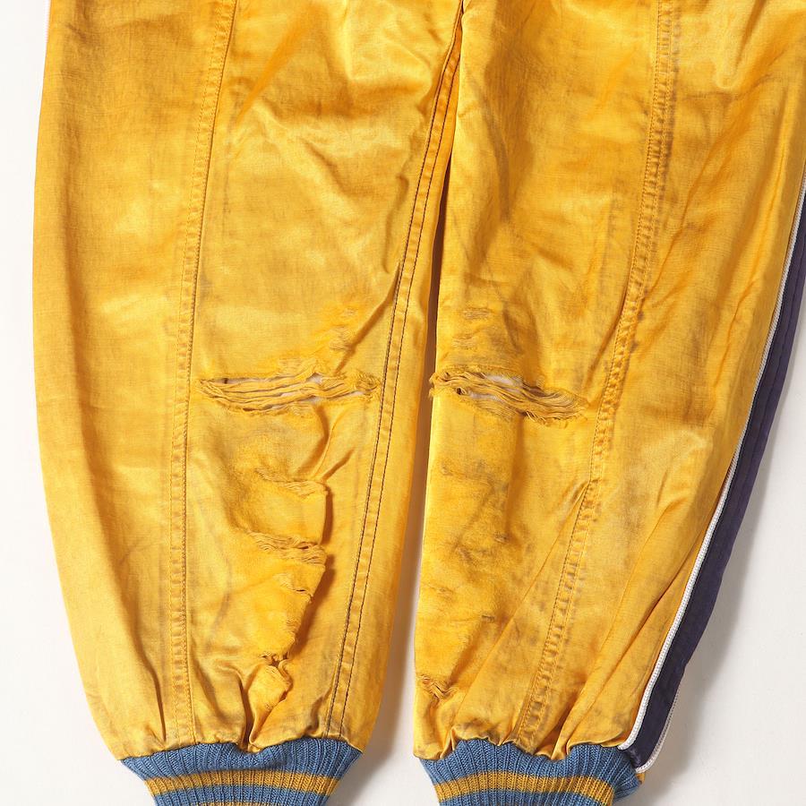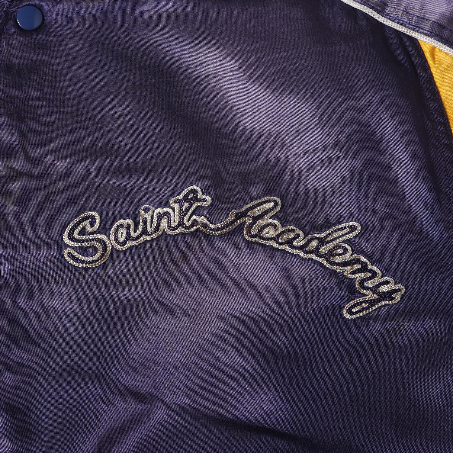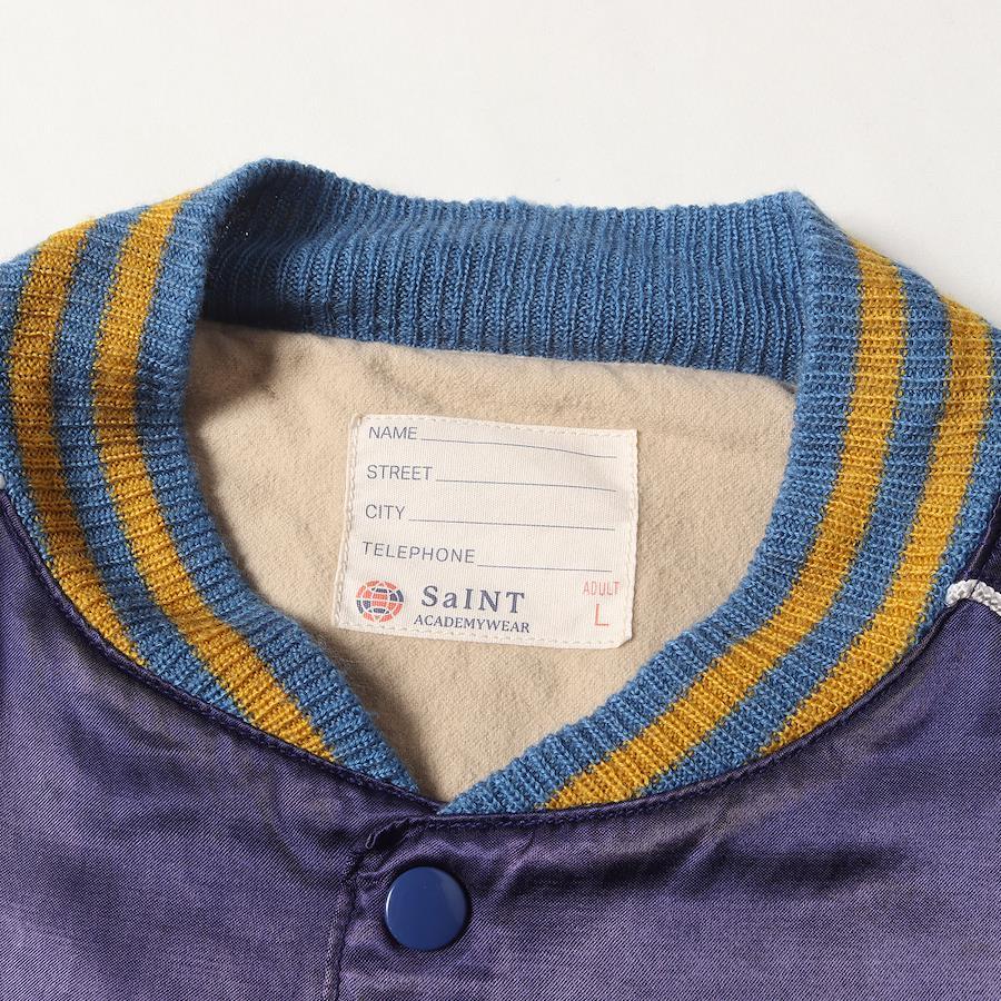 - こちらは”SHERMER ACADEMY”とコラボしたサテン素材のスタジャンです。ハードなダメージ、フェード、ヴィンテージ加工を施し、バックにフェルト製アップリケをあしらったデザインされております。