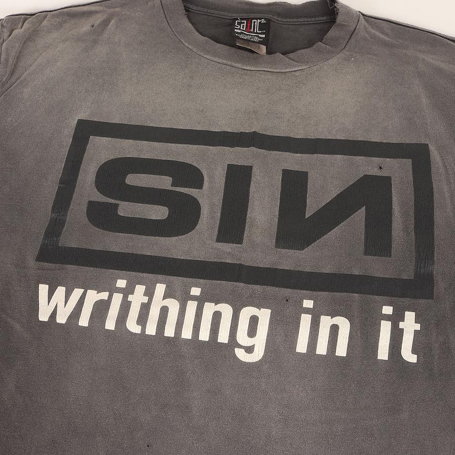 - フェード感のあるハードなヴィンテージ加工を施したルーズシルエットのロングスリーブTシャツです。こちらはインダストリアルロックバンド”Nine Inch Nails”のロゴをモチーフにしたデザインになります。