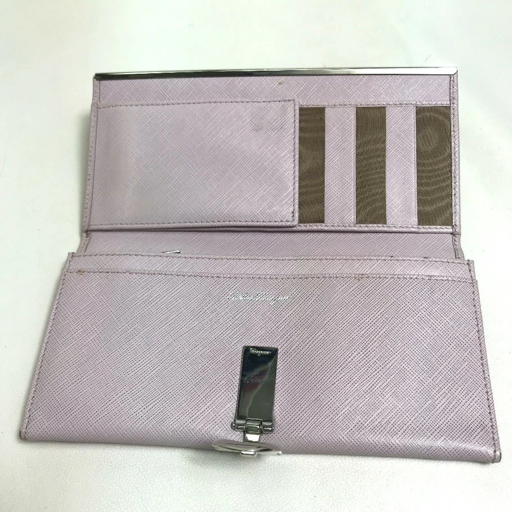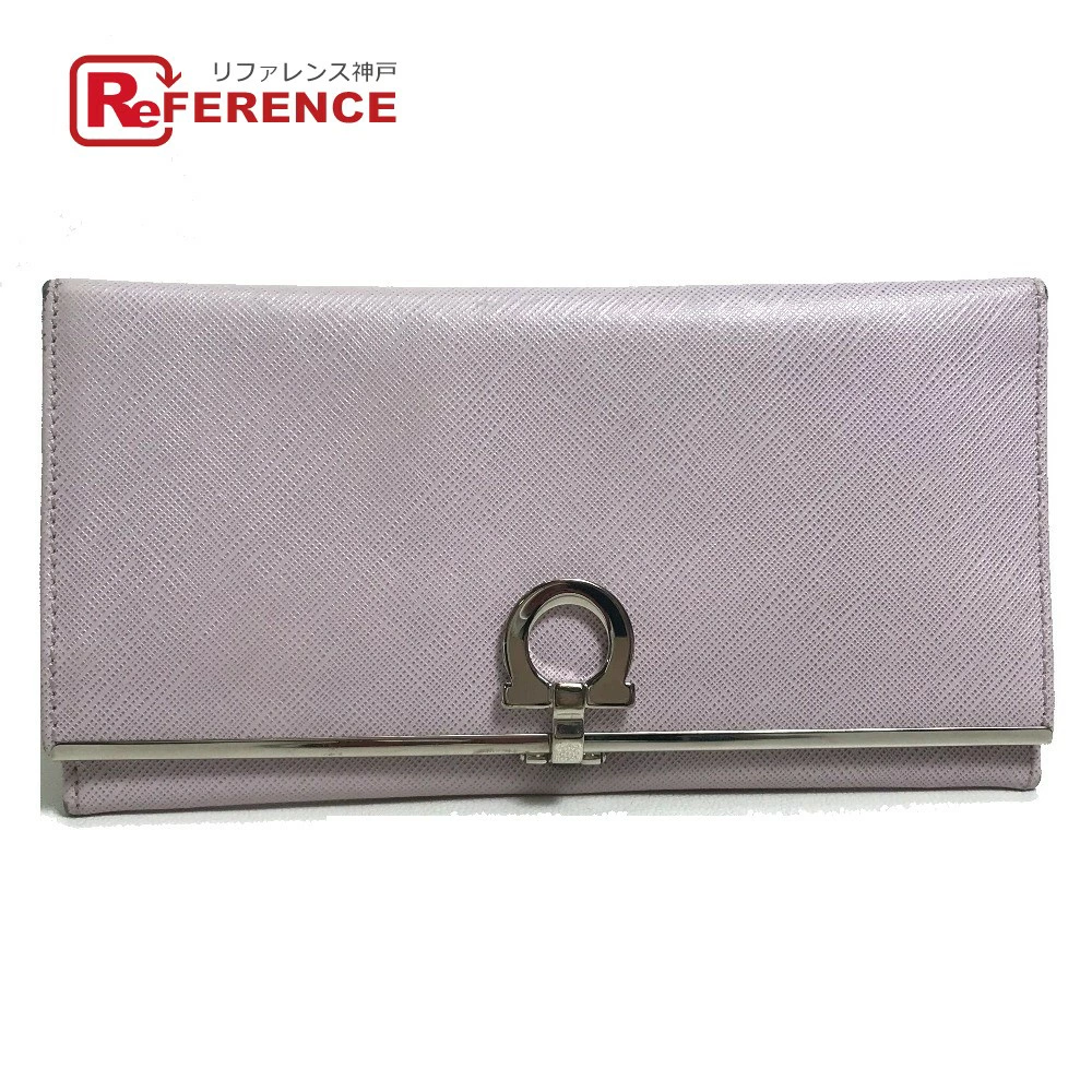 Pre-owned Salvatore Ferragamo Gancini logo hardware long wallet in leather, light purple.