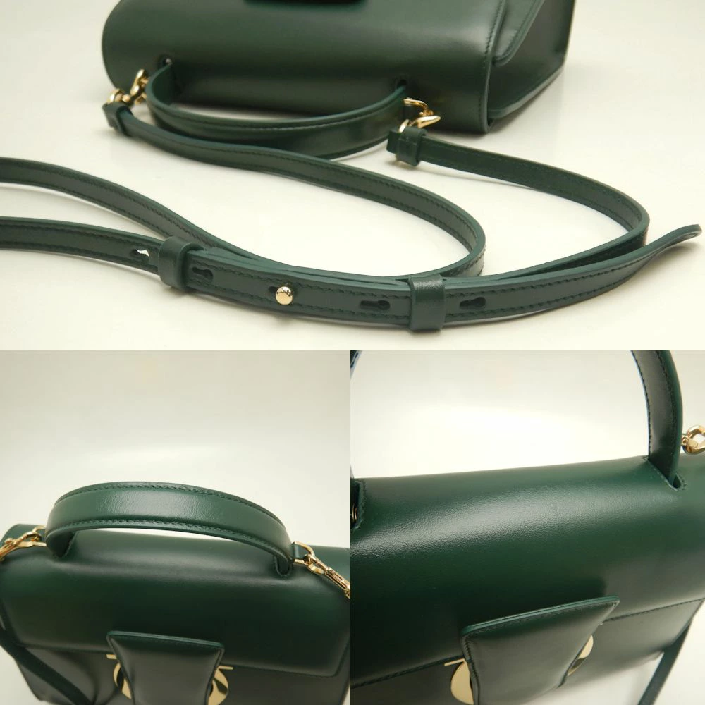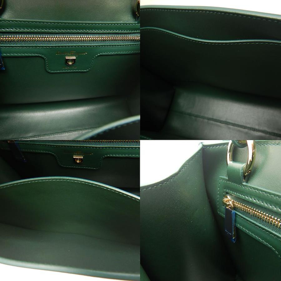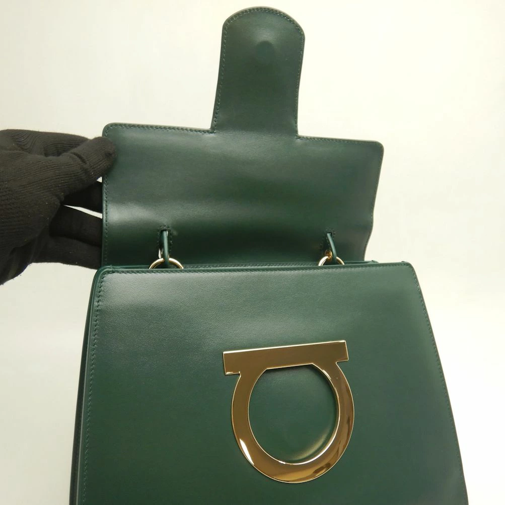 Pre-owned Salvatore Ferragamo Gancini 2-Way 21 H720 Handbag in Green Calfskin, Women's /253194