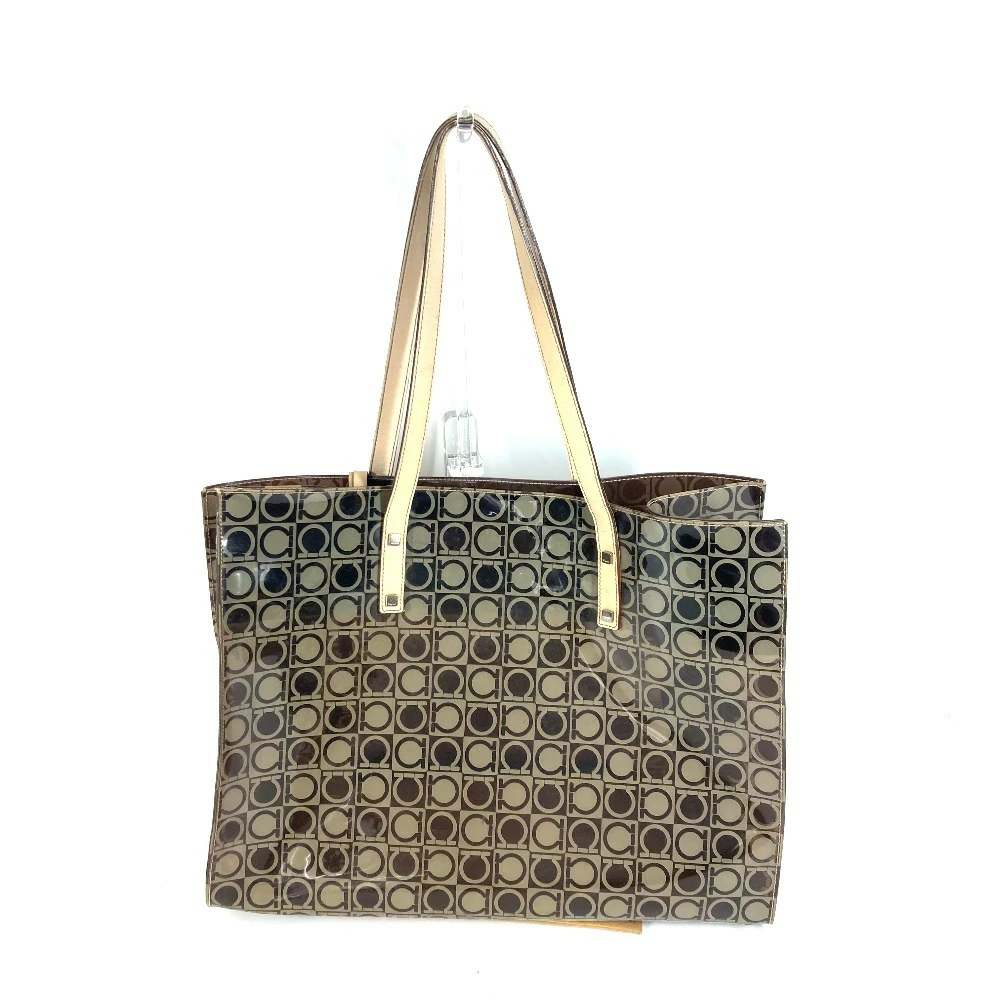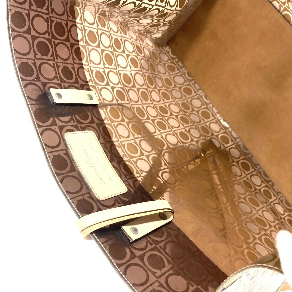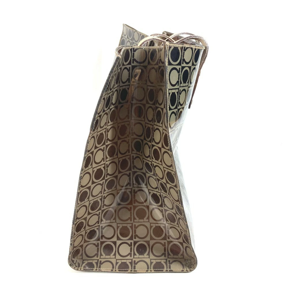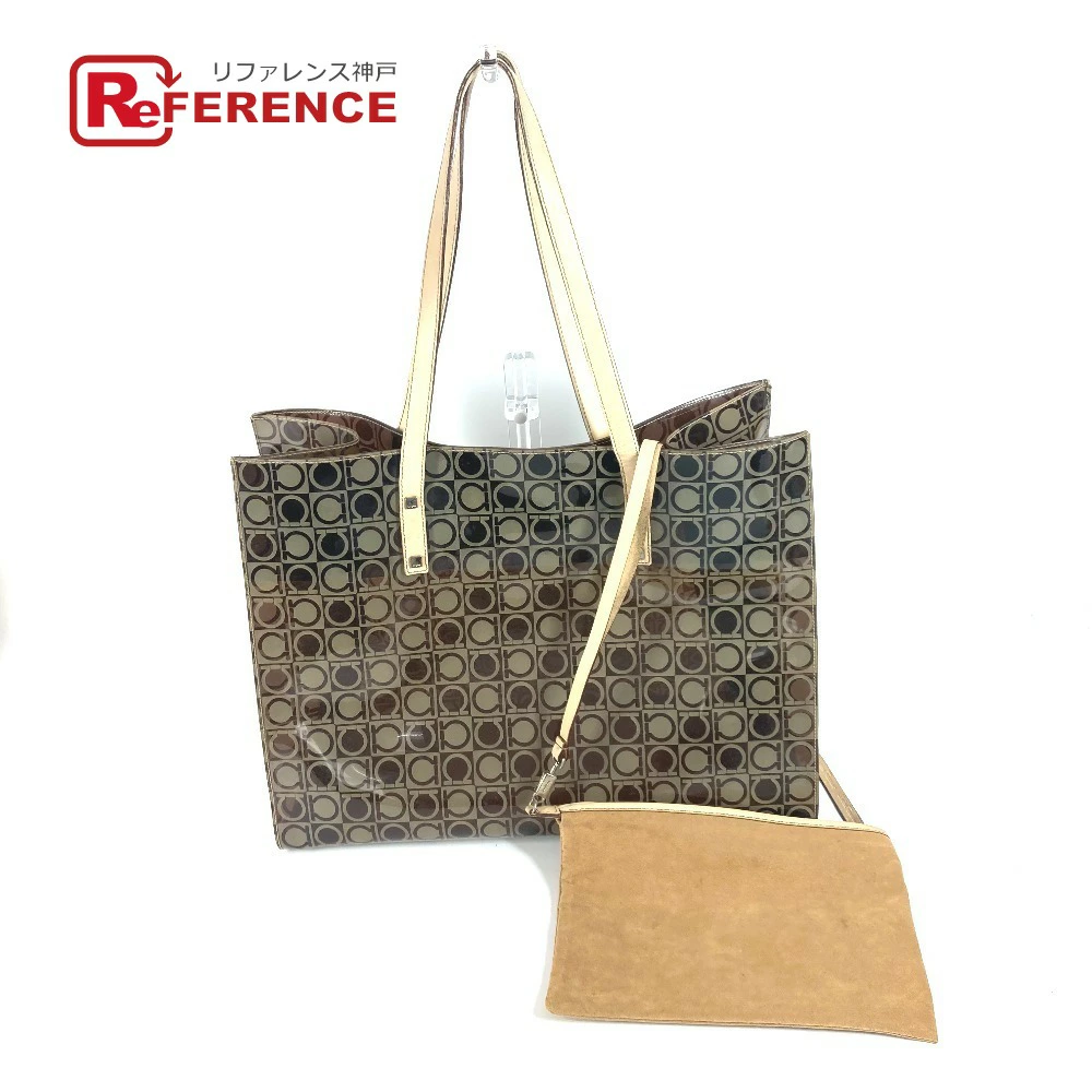 Pre-owned Salvatore Ferragamo beach bag with pouch, Gancini logo print, shoulder tote bag, vinyl/leather, unisex, brown.