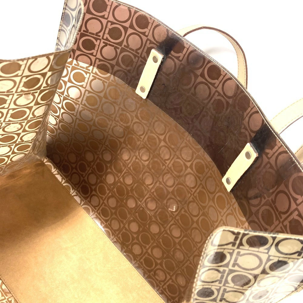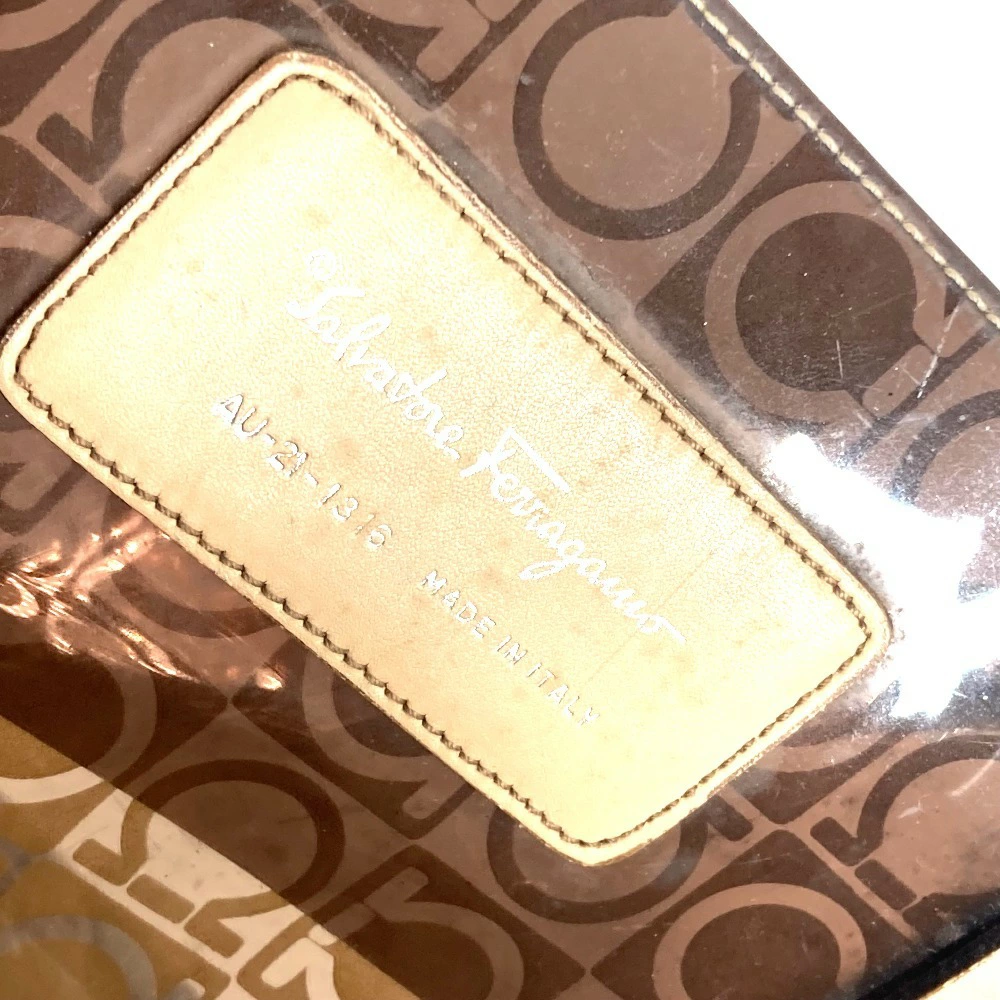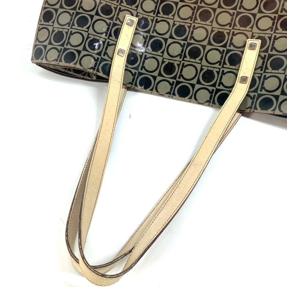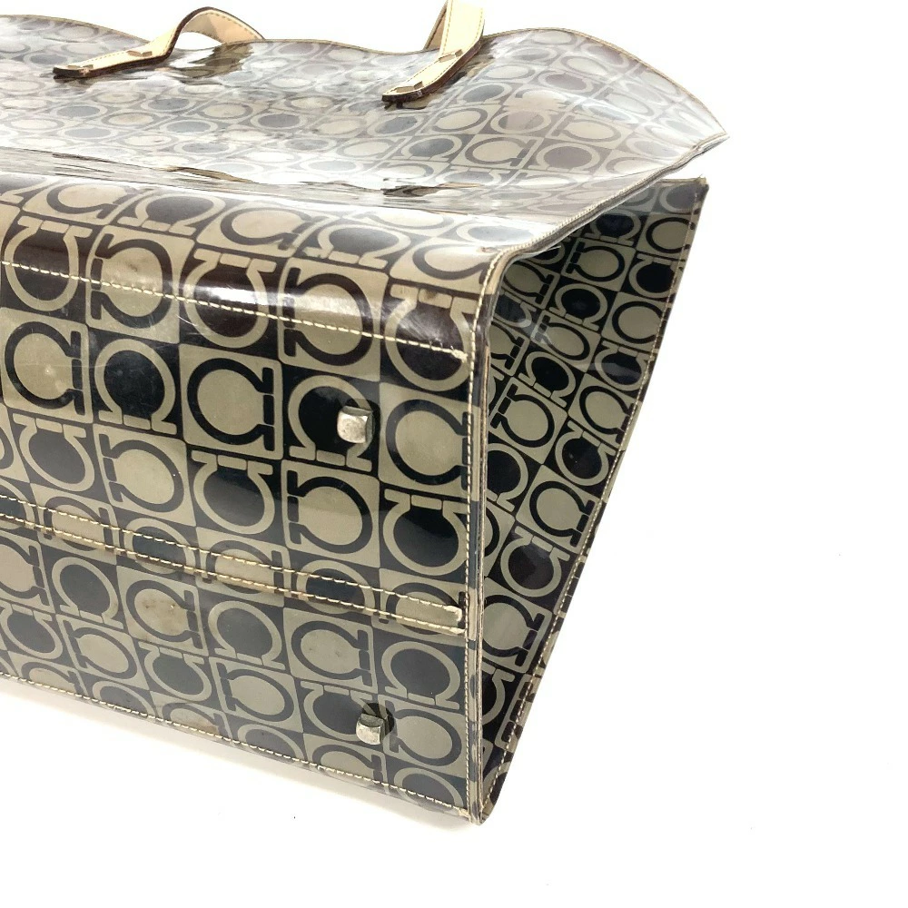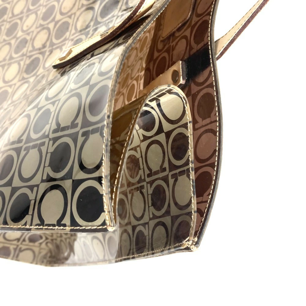 Pre-owned Salvatore Ferragamo beach bag with pouch, Gancini logo print, shoulder tote bag, vinyl/leather, unisex, brown.
