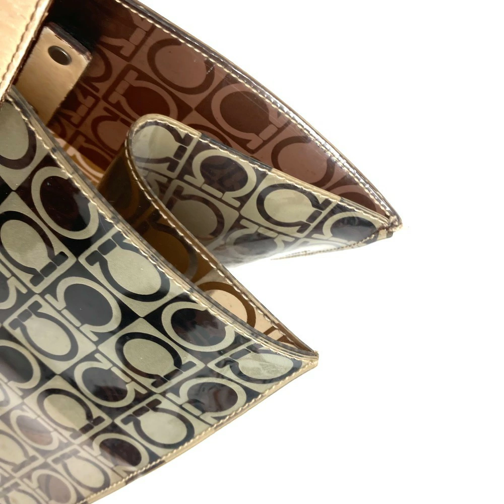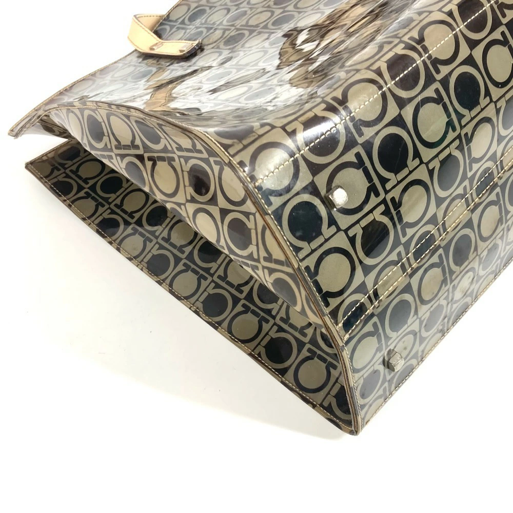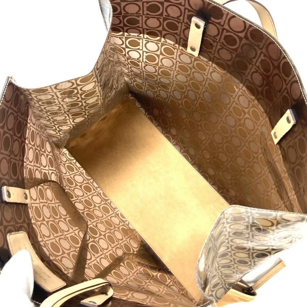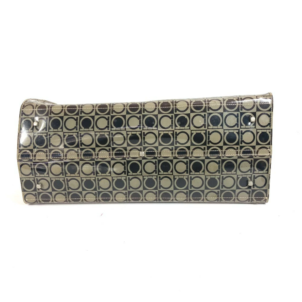 Pre-owned Salvatore Ferragamo beach bag with pouch, Gancini logo print, shoulder tote bag, vinyl/leather, unisex, brown.