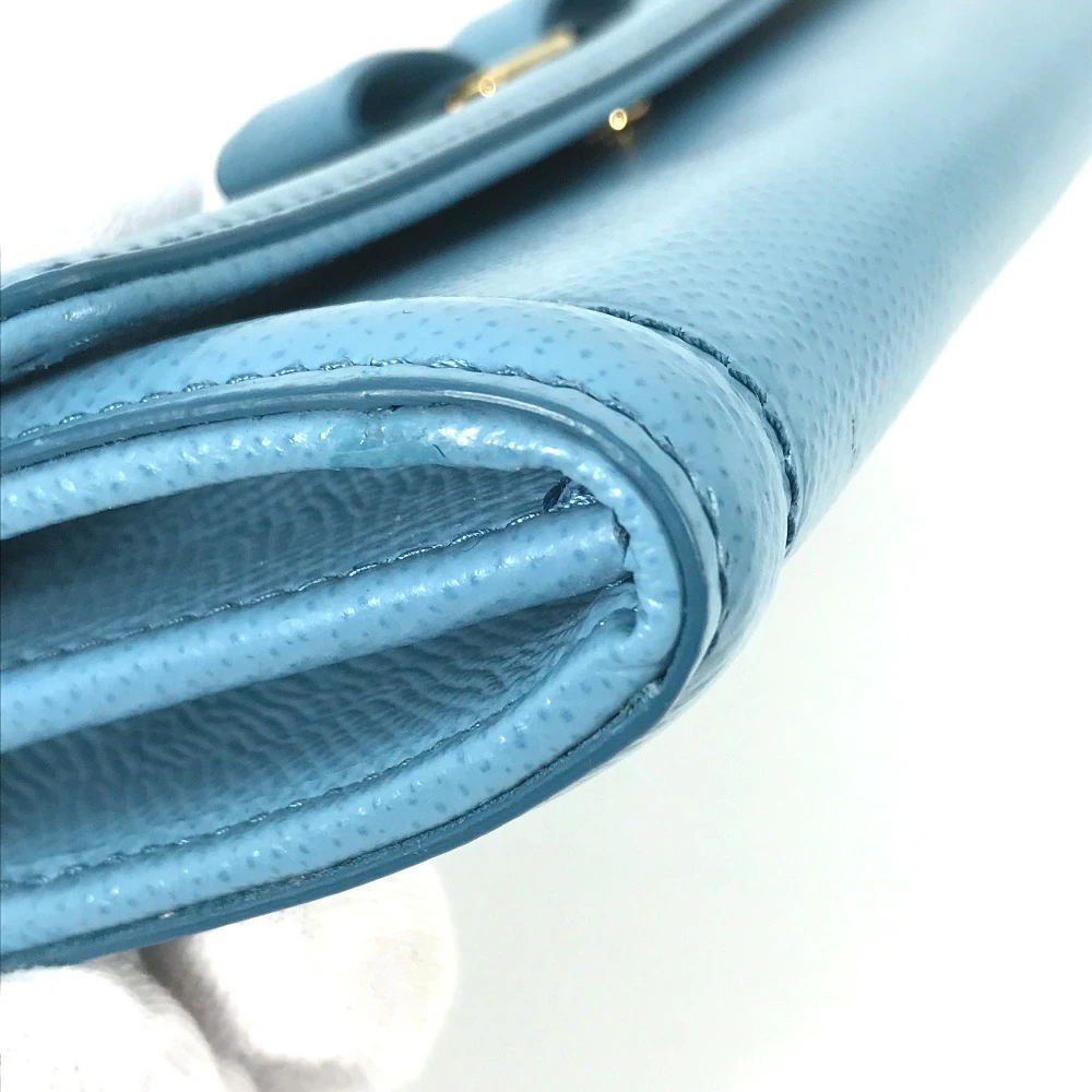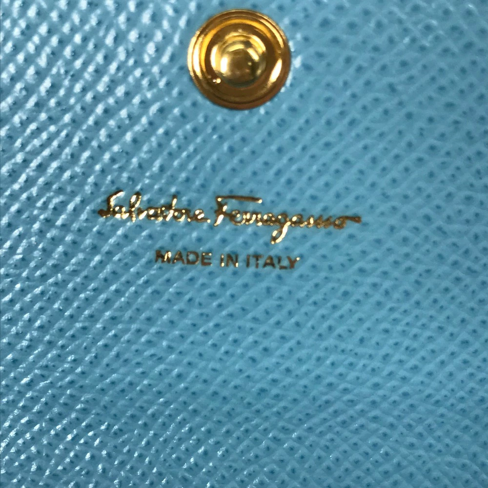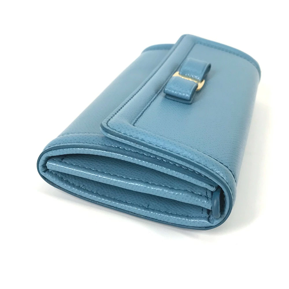 Pre-owned Salvatore Ferragamo Vara Ribbon Long Wallet with Pass Case, 22D154, Women's Leather, Blue, Like New