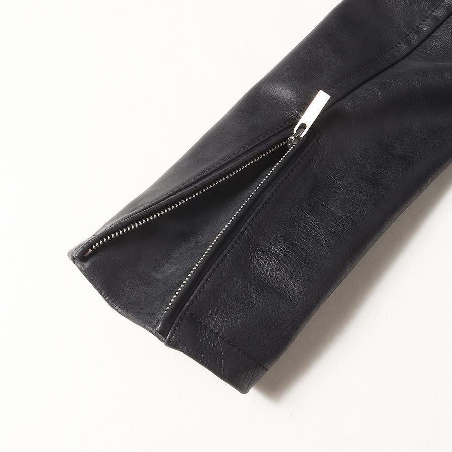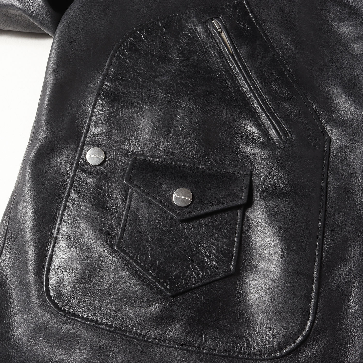 | 商品説明 | ヴィンテージ加工を施したカウレザーで仕上げたシングルライダースジャケットです。着丈の長いロングシルエットでデザインした一枚になります。 |