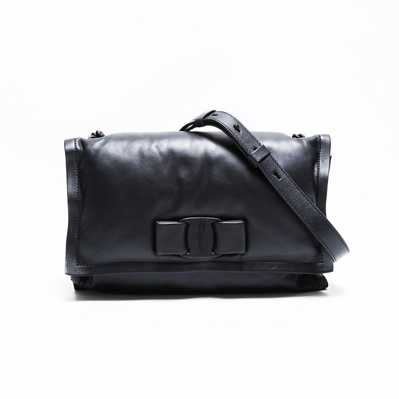 Salvatore Ferragamo Viva Vara Nylon Shoulder Bag in Black WS22853