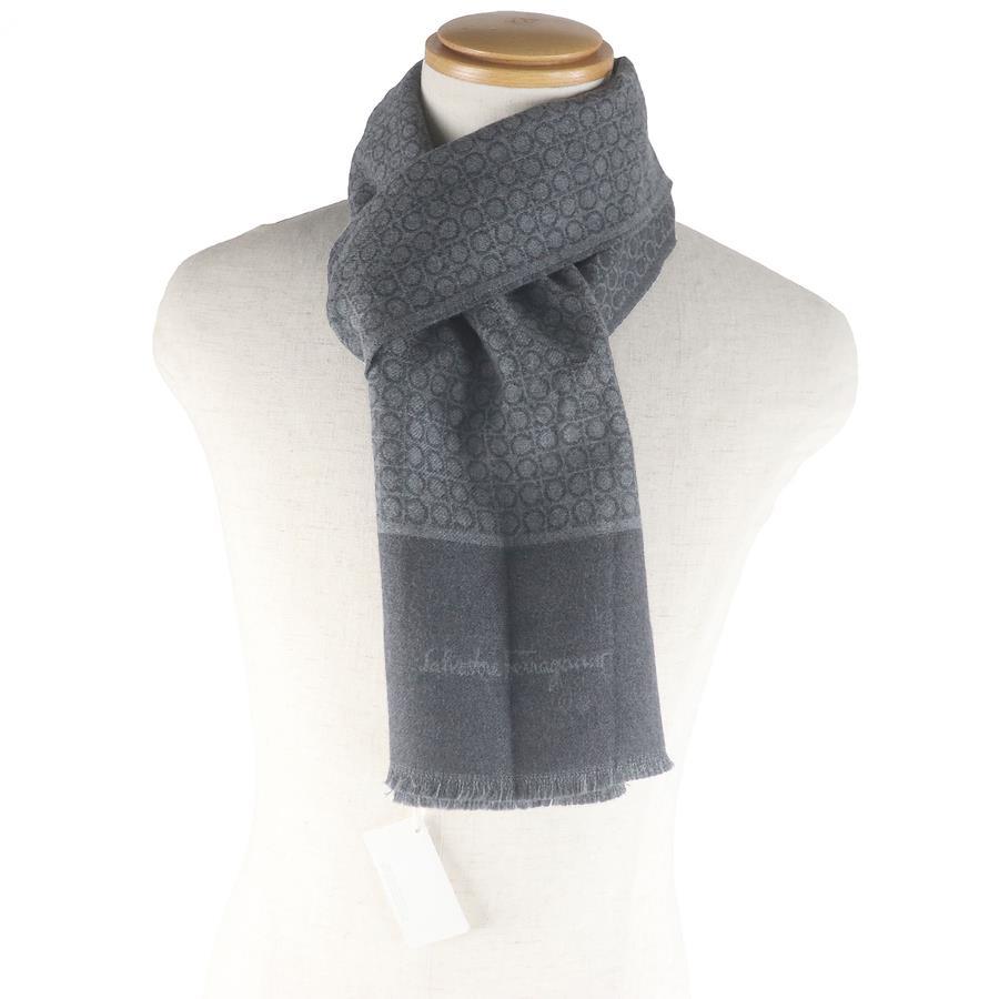 Salvatore Ferragamo Gancini scarf in grey wool with fringe