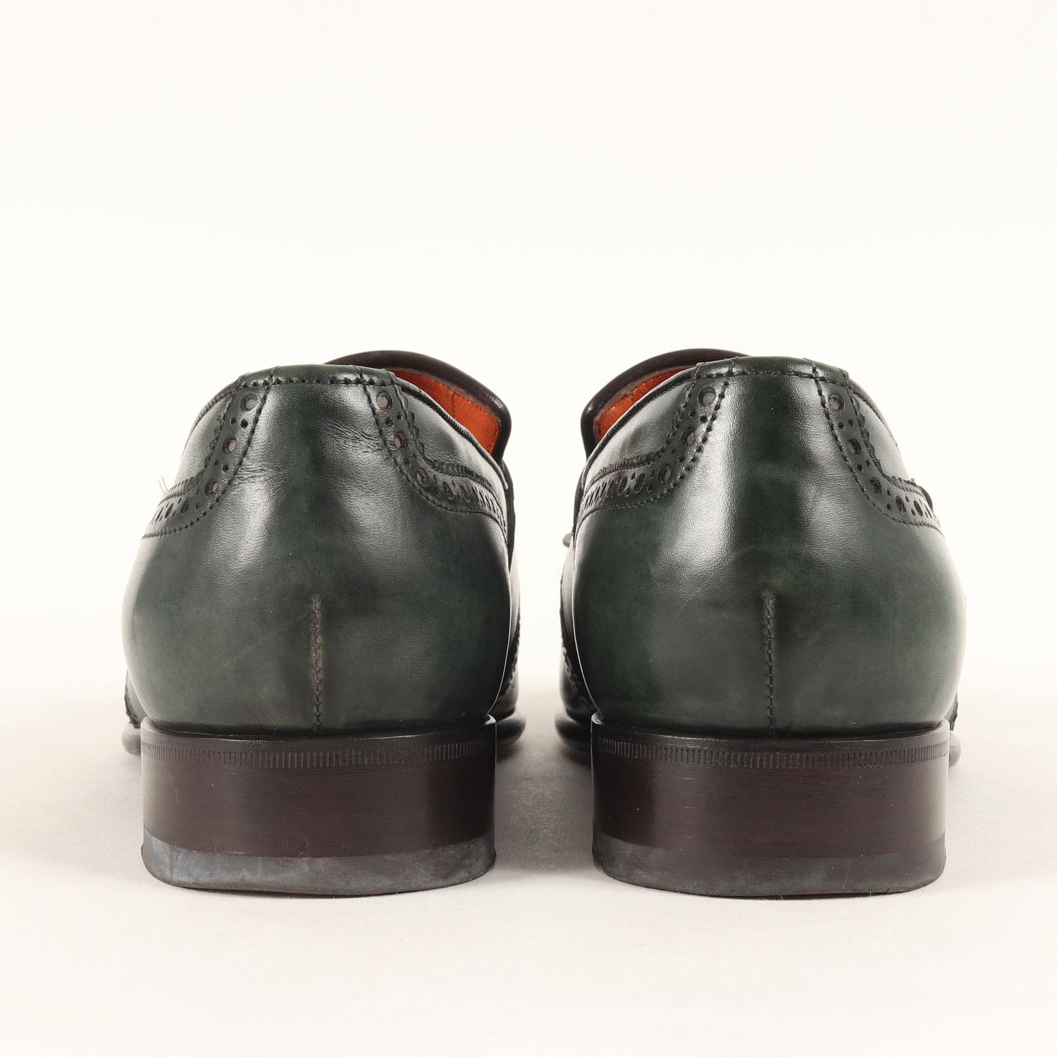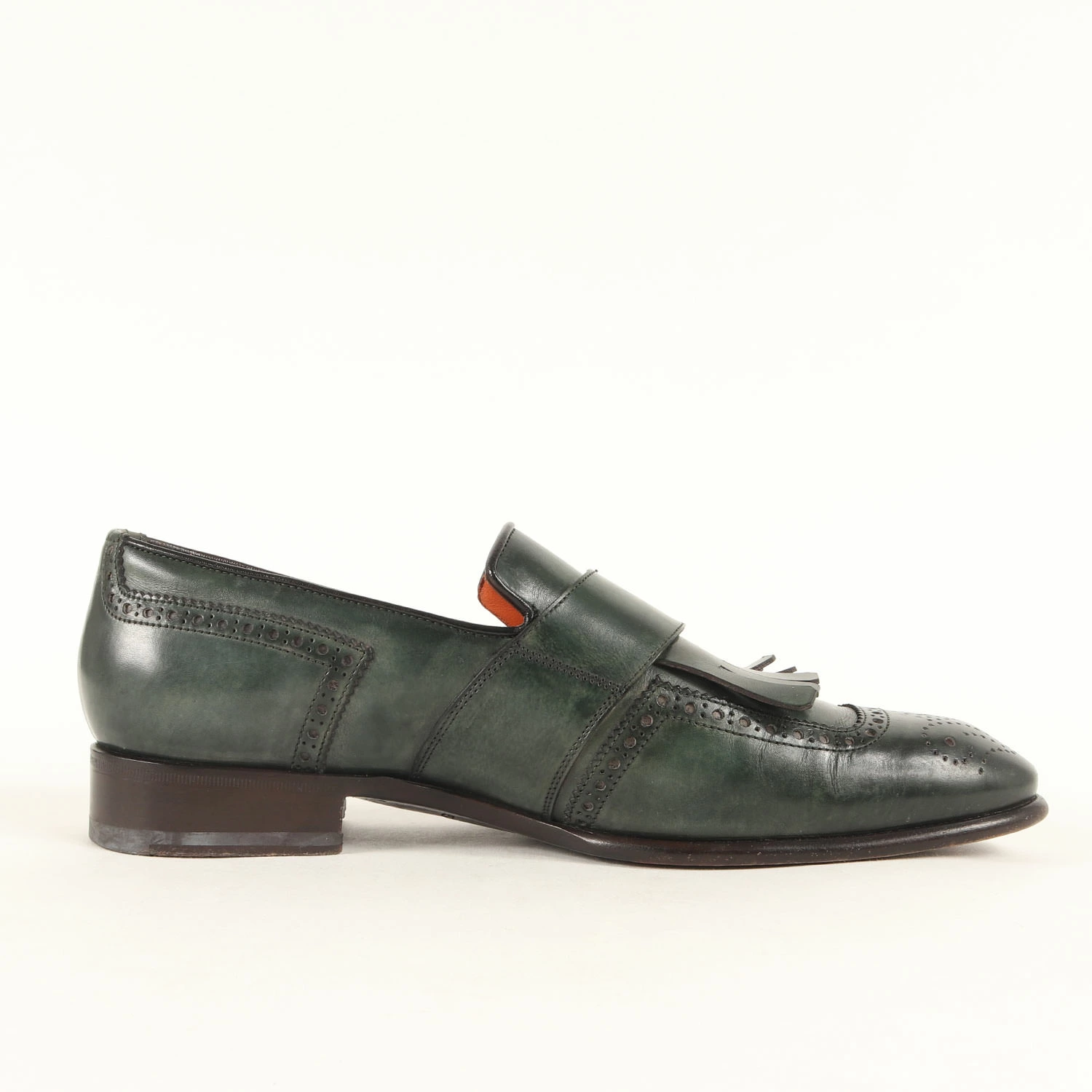 SANTONI Double Monk Strap Medallion Dress Shoes (14824), Size 7 (equivalent to a 26.0cm shoe), Green, Made in Italy, Men's Designer Leather Shoes, Pre-owned, K4618