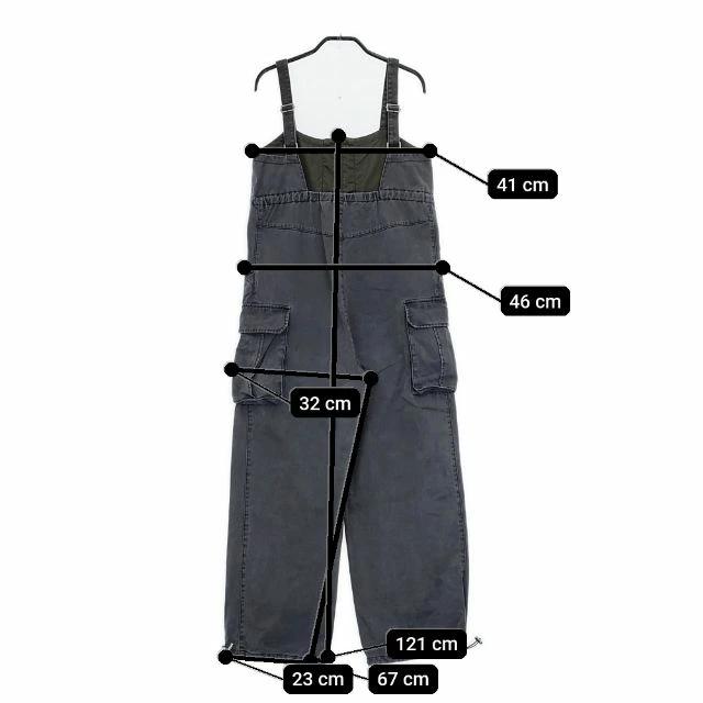 | 実寸サイズ | 着丈:約121cm 身幅:約41cm ウエスト:約46cm 股下:約67cm ワタリ幅:約32cm 裾幅:約23cm 備考 肩紐は調節可能 ※採寸画像がある商品はハンガーに吊るした状態での計測のため、平置きでの採寸とは差が生じる場合がございます。平置きでの実寸サイズをご希望の場合は、ご購入前に必ずご質問ください。 ※記載以外のサイズが合わないことを理由とした返品はできませんので、 記載部分以外で実寸サイズの気になる箇所があれば必ず購入前にご質問ください。 |