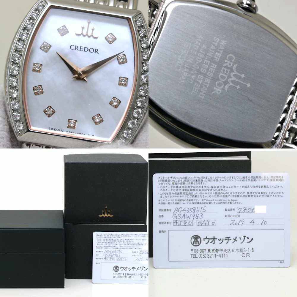 | 商品説明 | | 取扱店舗 | ミドリヤ本店 | | 状態 | 中古ABランク | | 型番 | GSAW983 4J80-0AY0 | | 素材 | ステンレススチール | | 文字盤 | ホワイトシェル/ダイヤモンド | | サイズ | [ケース幅]約23mm(リューズ除く) [腕周り]最大約17.5cm