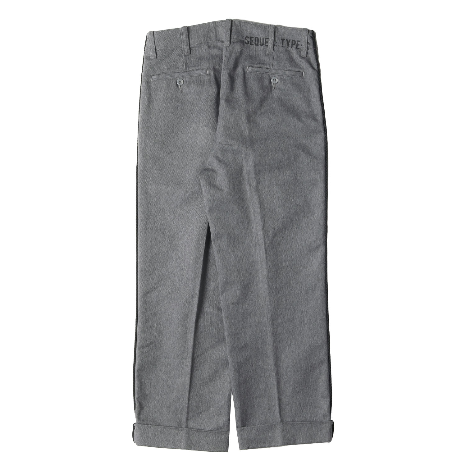 - 厚手のT/Cツイル生地を使用し、サイドにパイピングラインをあしらったジッパーフライチノパンツです。こちらは2タックの入ったワイドテーパードシルエットのTYPE-Cモデルになります。