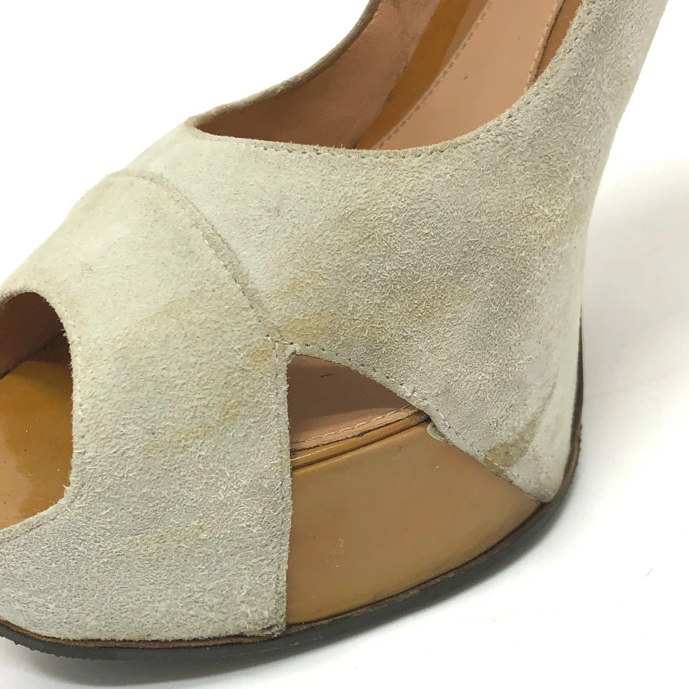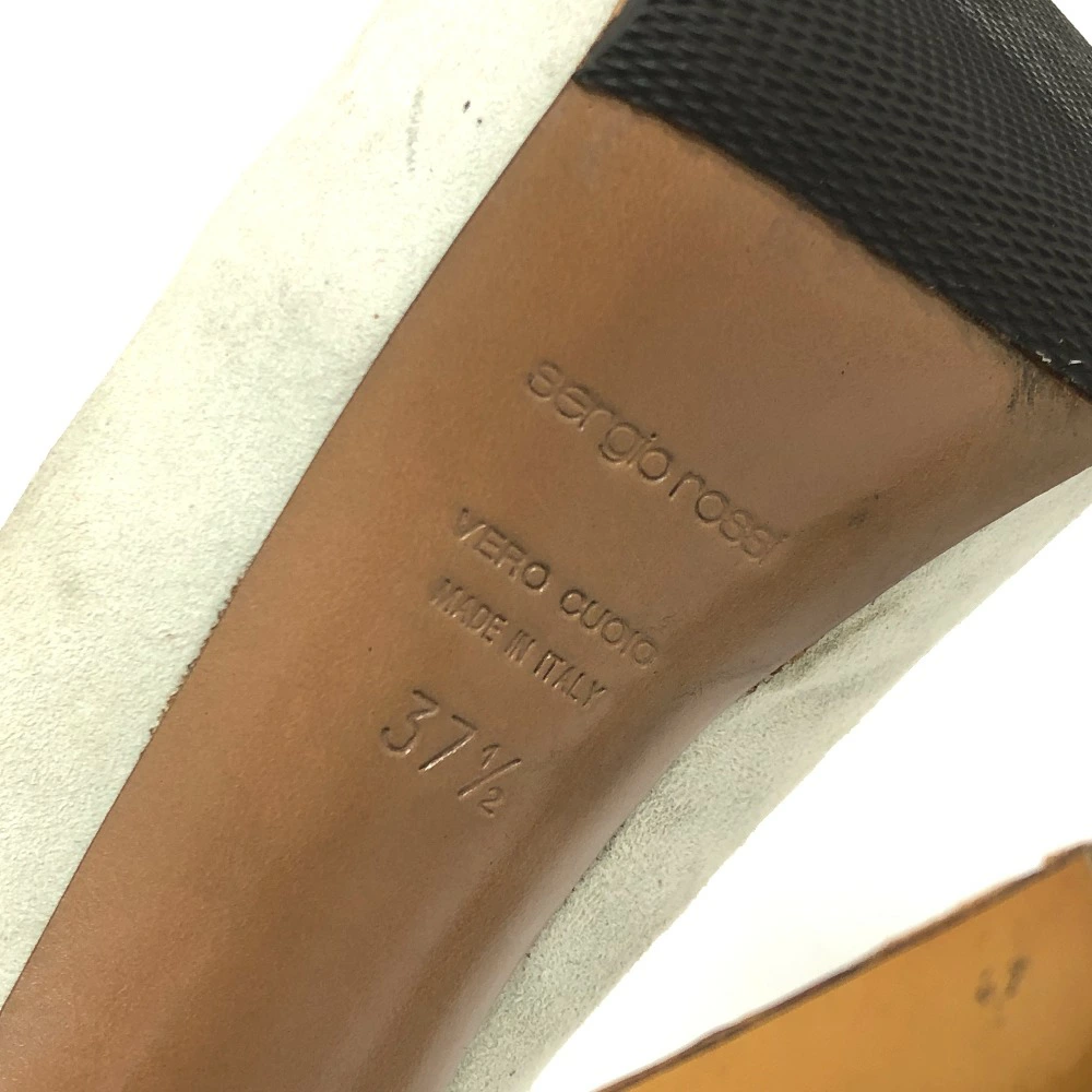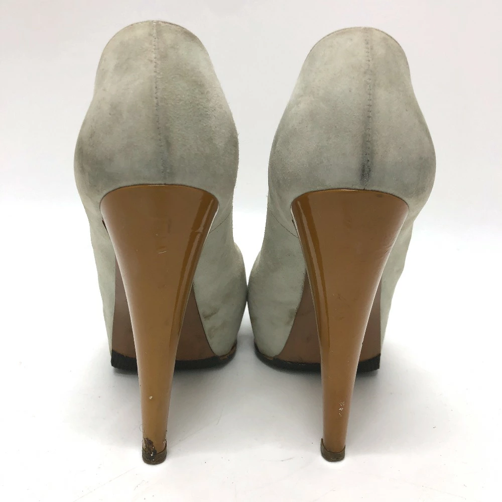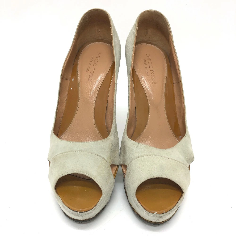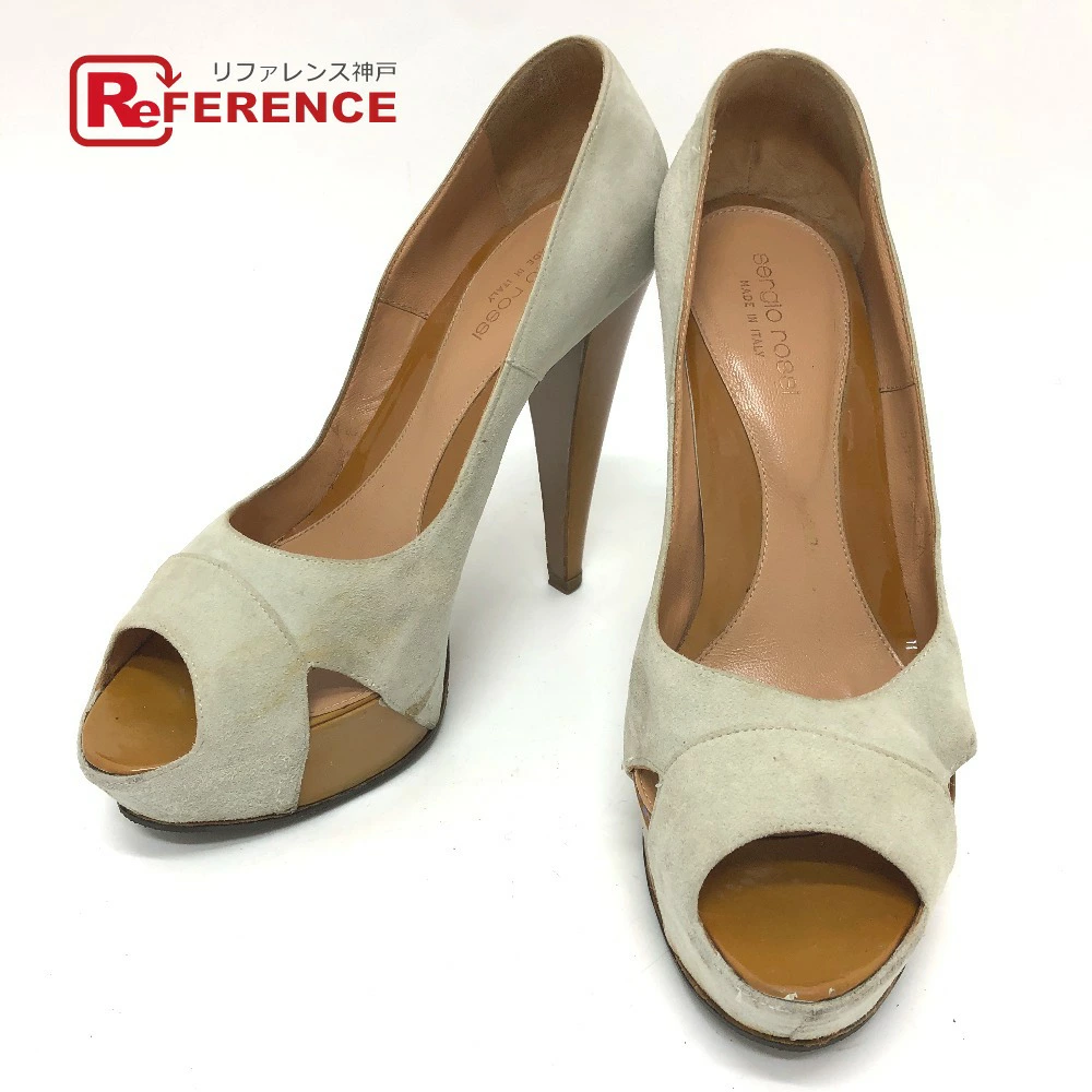 Pre-owned Sergio Rossi open-toe platform cone heel pumps in gray suede for women.