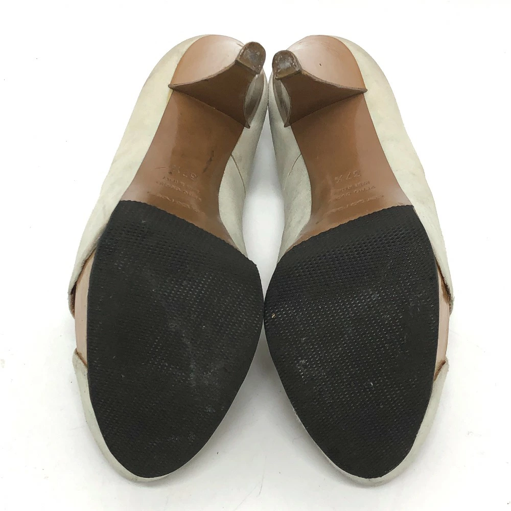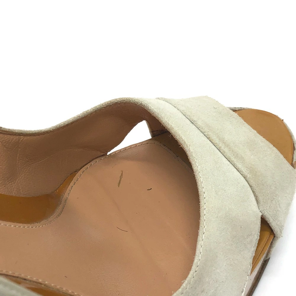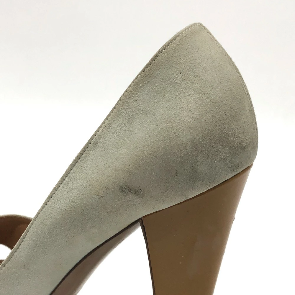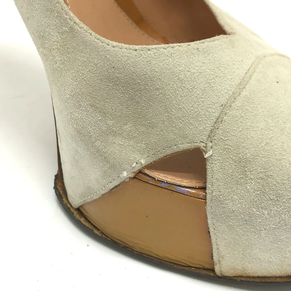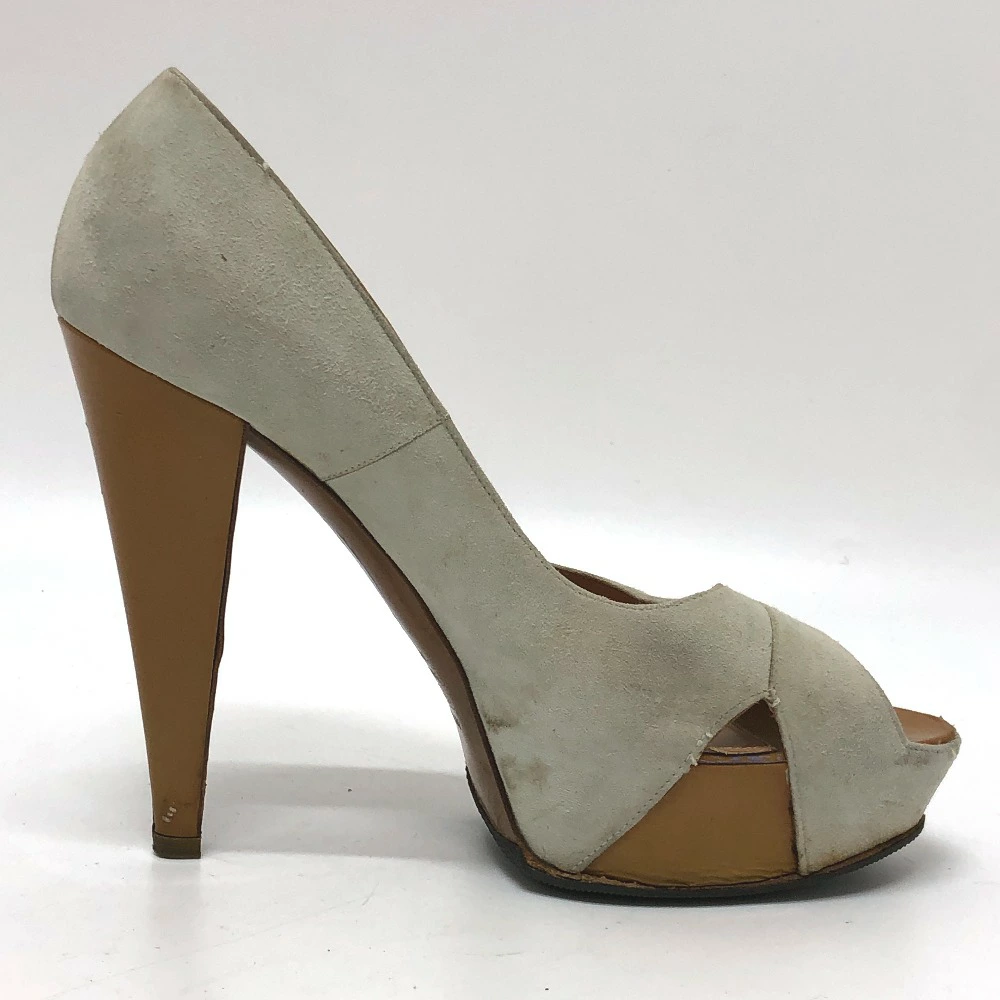 Pre-owned Sergio Rossi open-toe platform cone heel pumps in gray suede for women.
