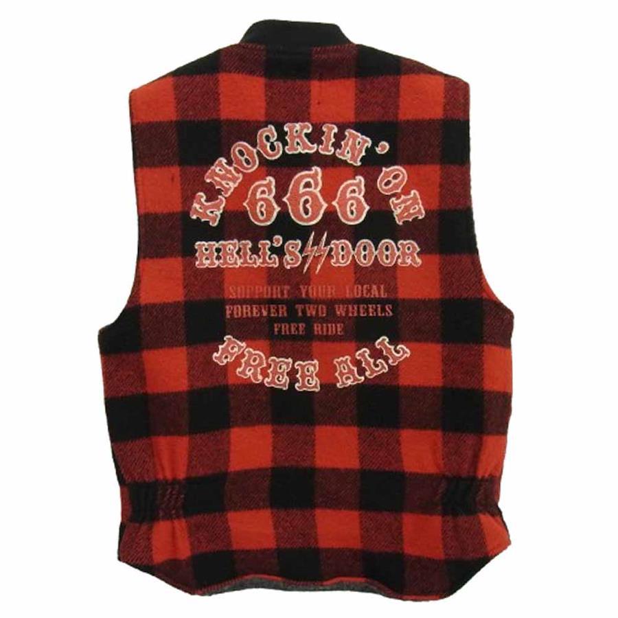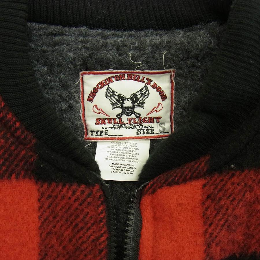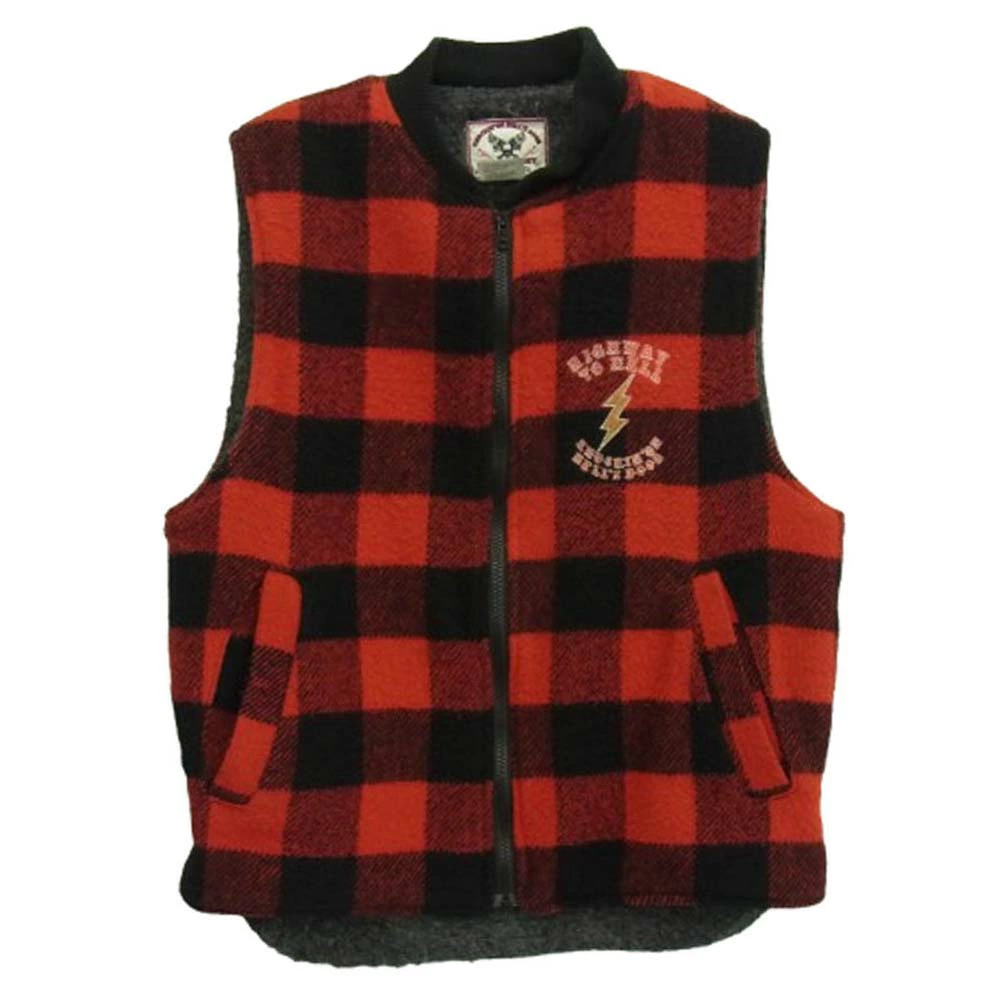 SKULL FLIGHT x FREE RIDE Embroidered Block Check Print Wool Vest with Boa Lining, Red, Size Small, Men's [Pre-owned]