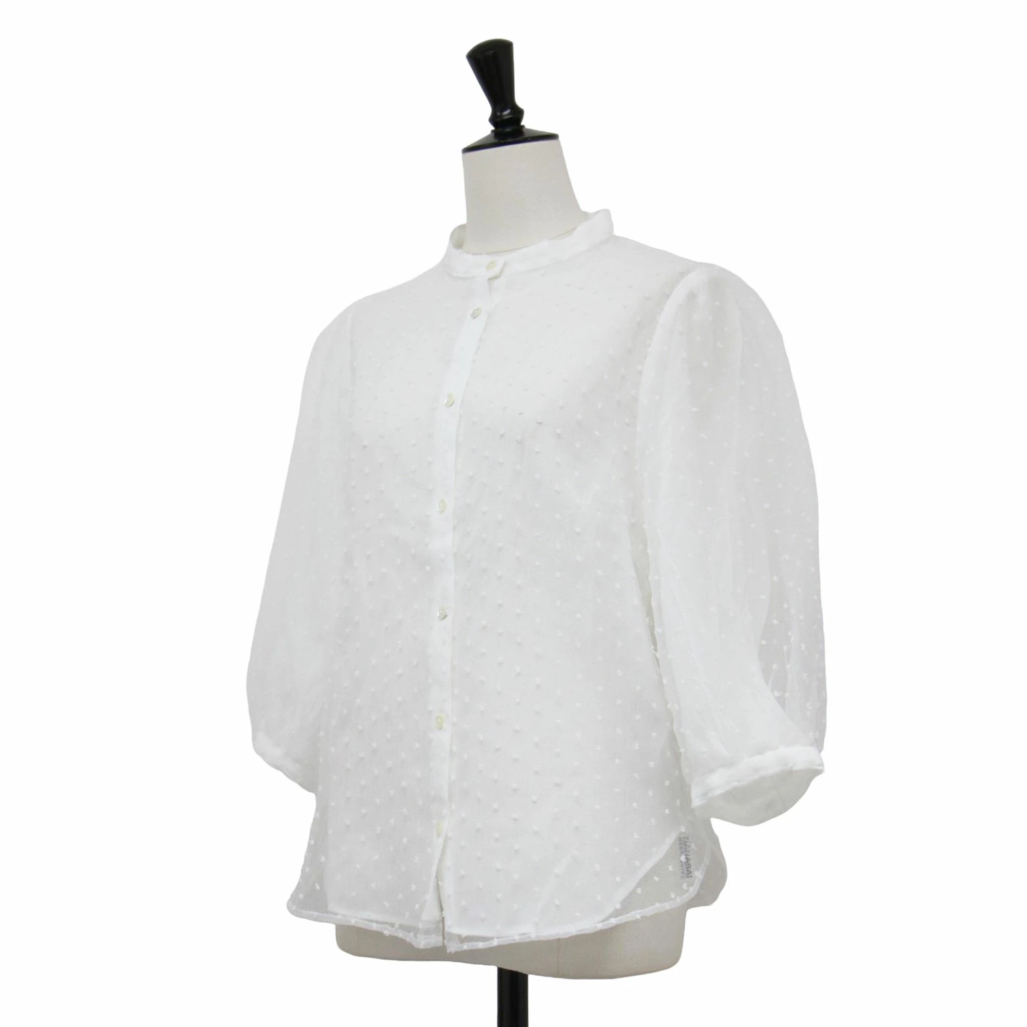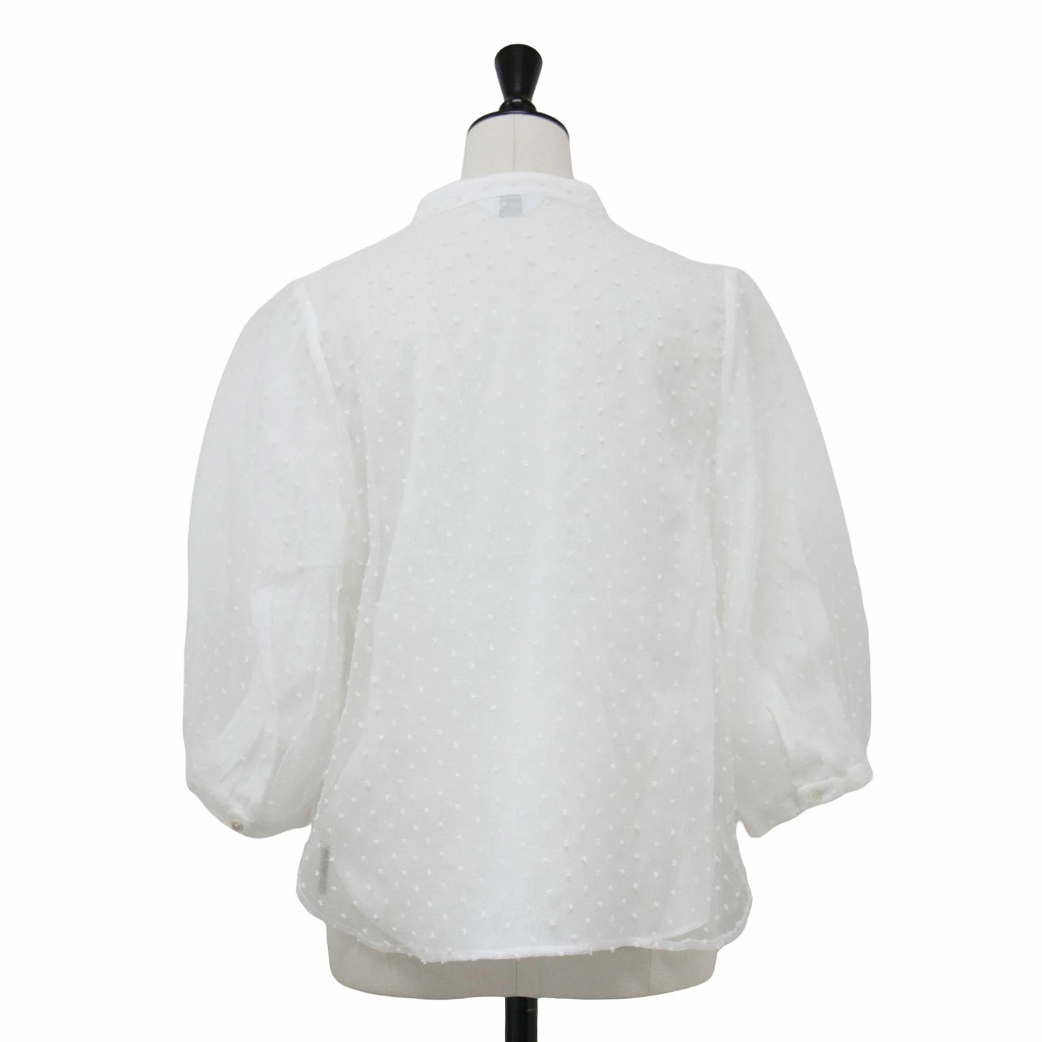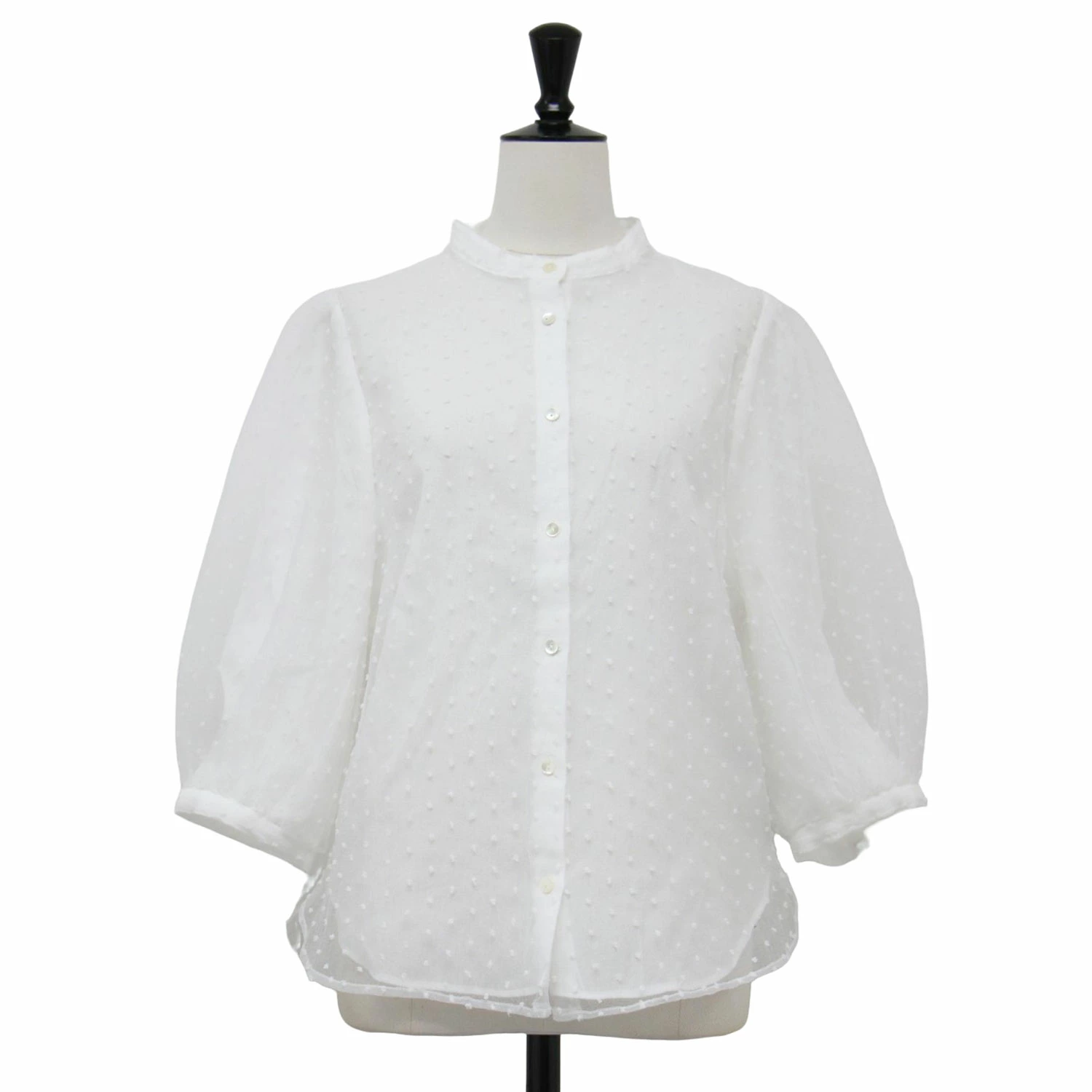 SLOBE IENA Blouse, White, Size: Free | Spring/Summer 2024 Polka Dot Tulle Organza Blouse/Shirt | 3/4 Sleeve, No Collar, Puff Sleeve, Sheer | Women's Top | Pre-owned | K4619